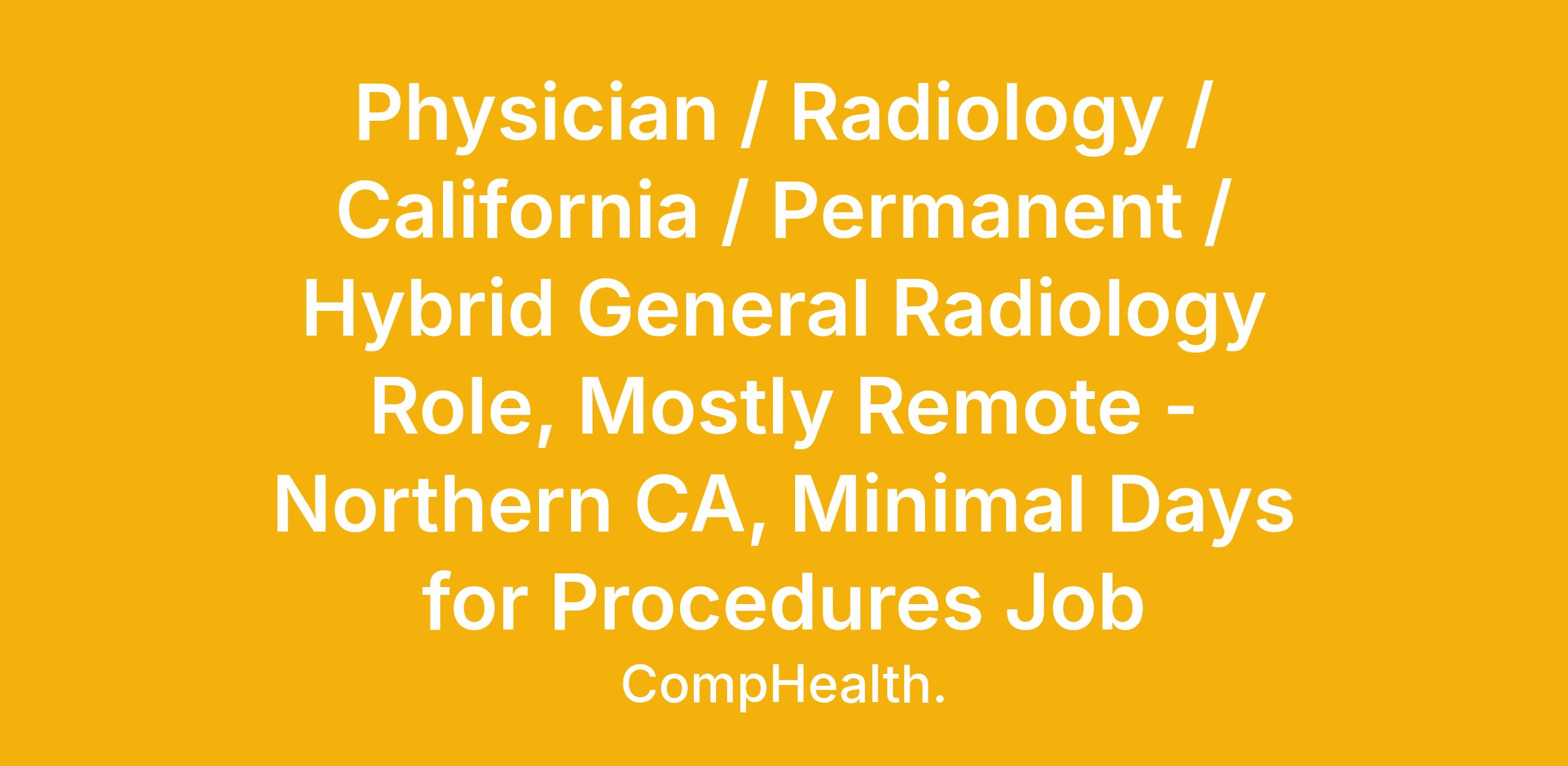 Physician / Radiology / California / Permanent / Hybrid General Radiology Role, Mostly Remote - Northern CA, Minimal Days for Procedures Job