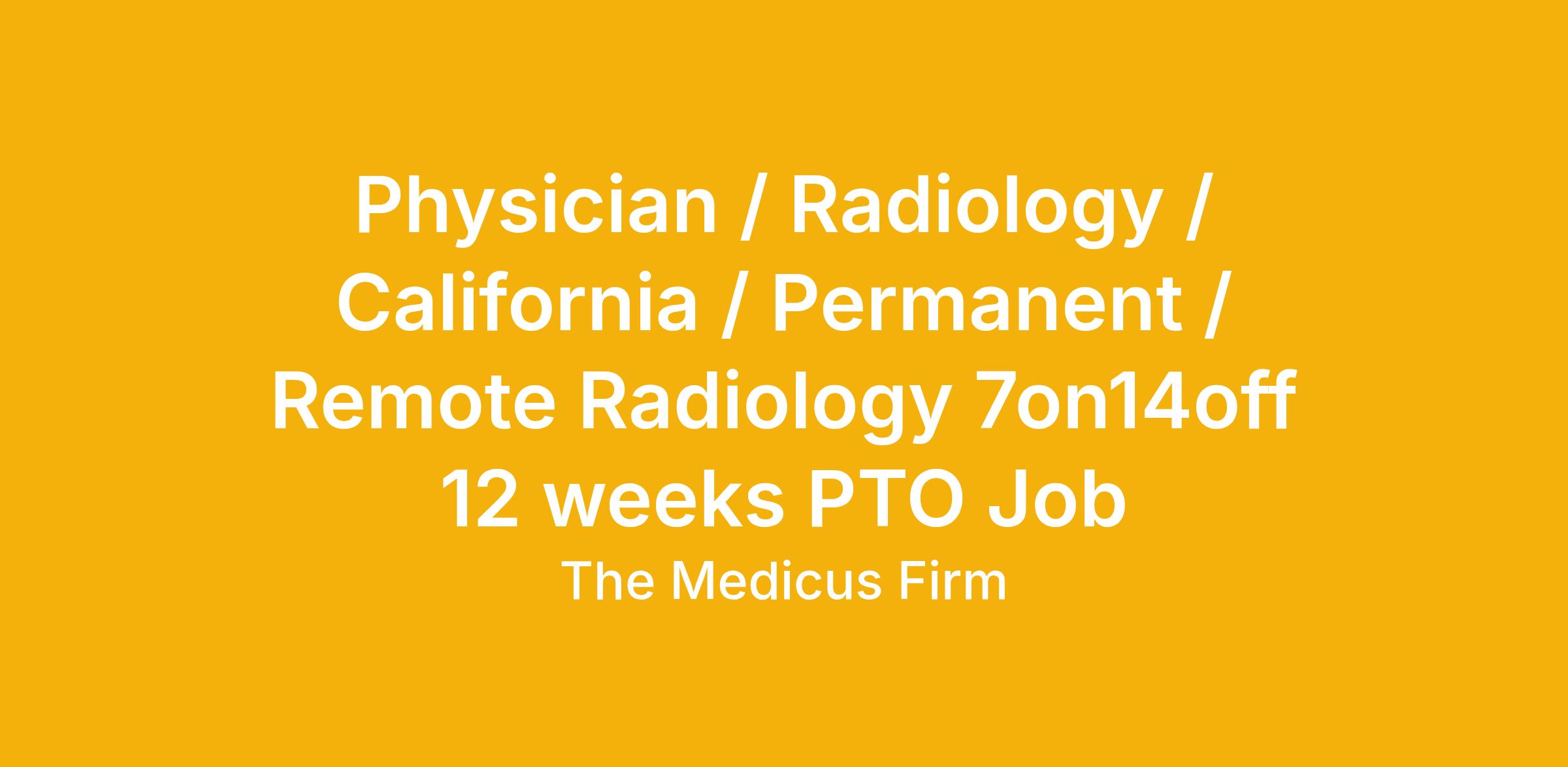 Physician / Radiology / California / Permanent / Remote Radiology 7on14off 12 weeks PTO Job