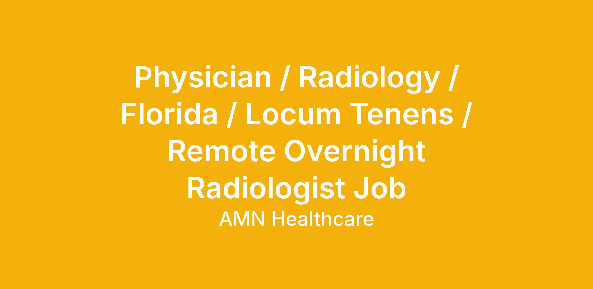 Physician / Radiology / Florida / Locum Tenens / Remote Overnight Radiologist Job