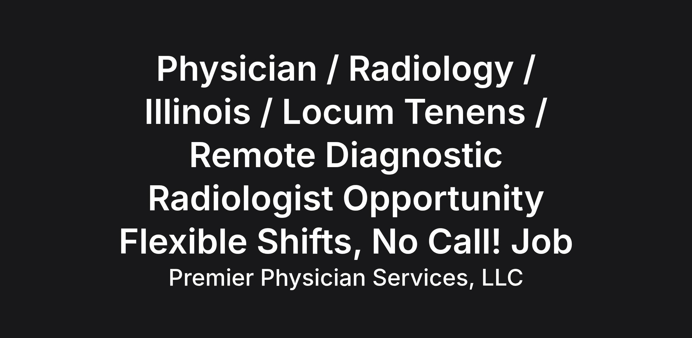 Physician / Radiology / Illinois / Locum Tenens / Remote Diagnostic Radiologist Opportunity Flexible Shifts, No Call! Job