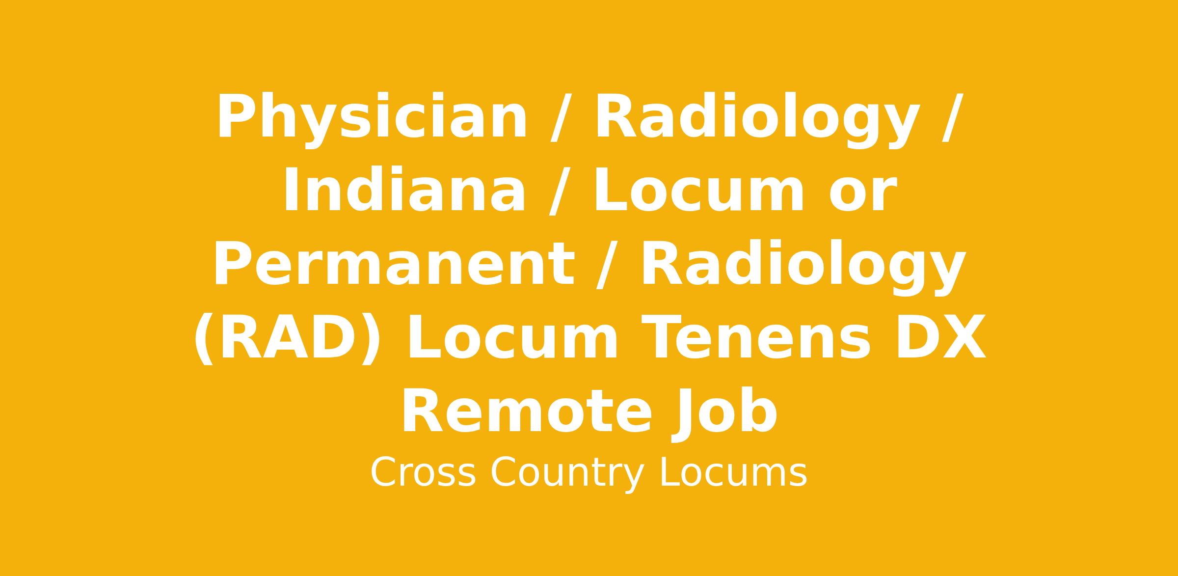 Physician / Radiology / Indiana / Locum or Permanent / Radiology (RAD) Locum Tenens DX Remote Job