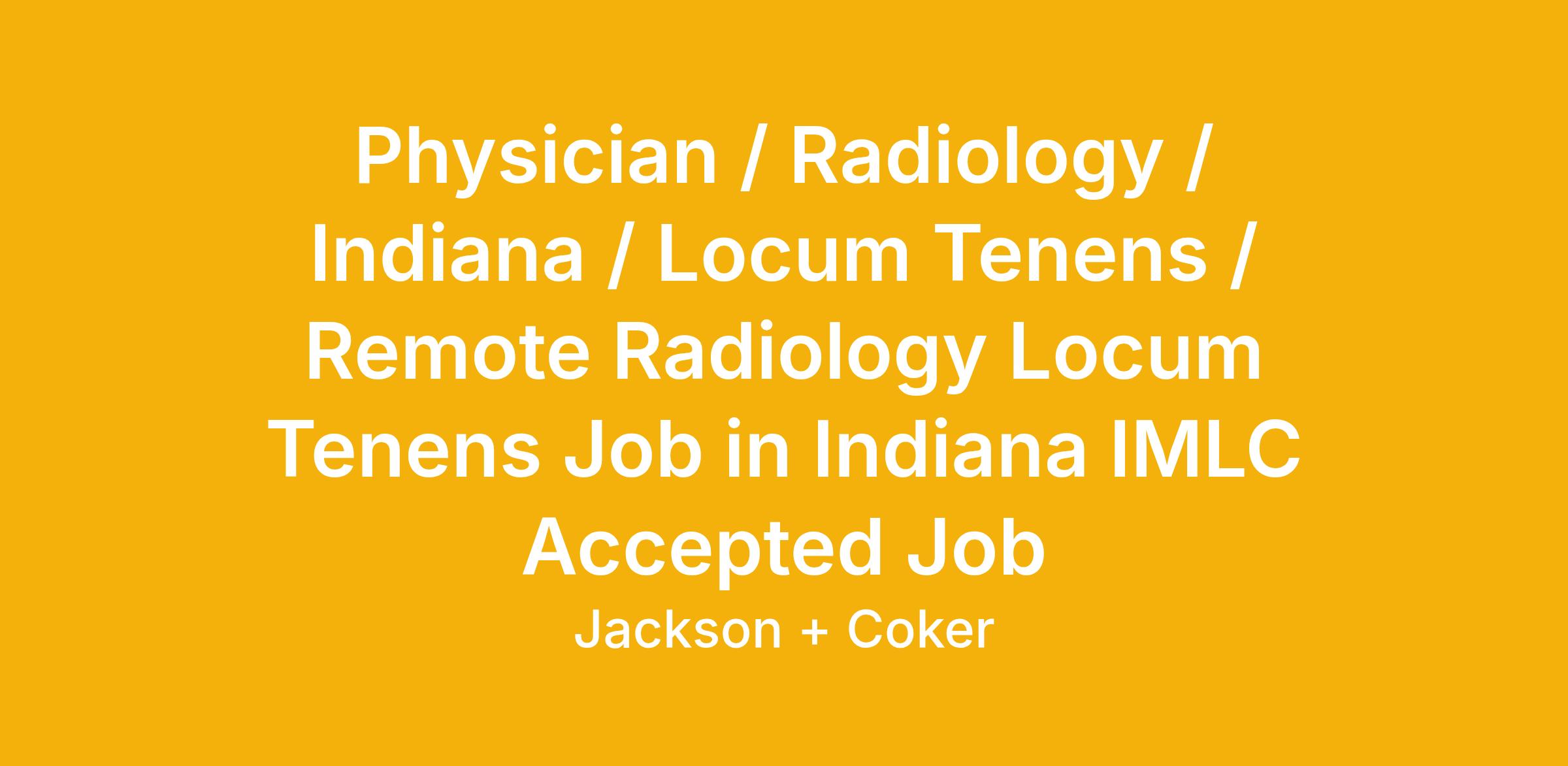 Jackson and Coker is partnered with a great client in Indiana that needs Remote/Teleradiology coverage starting ASAP.