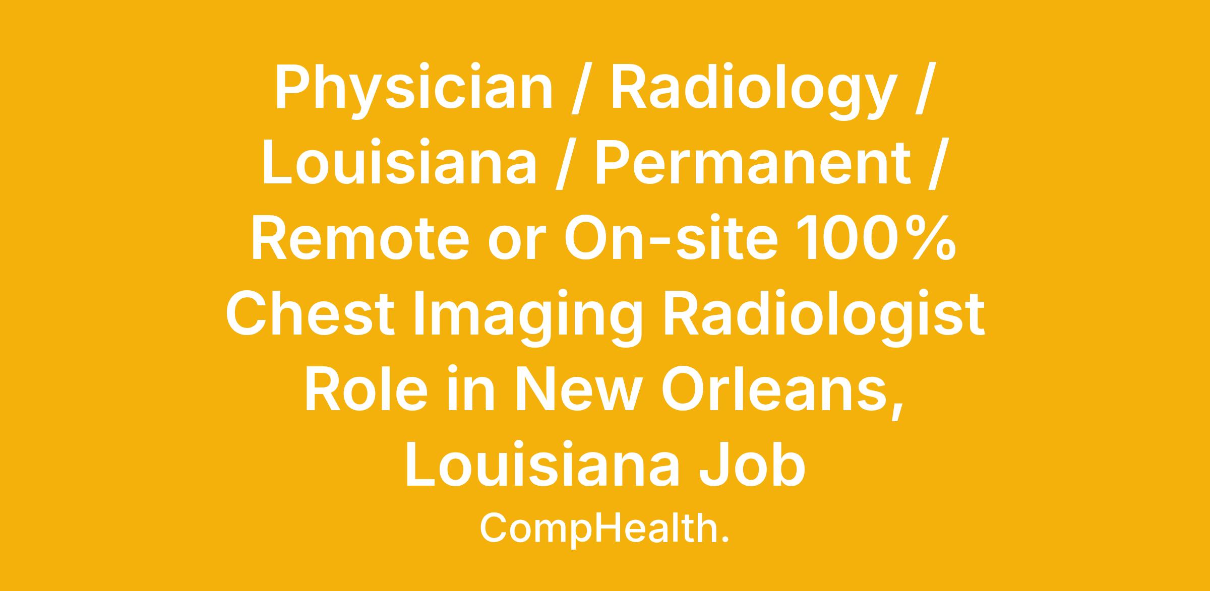 Physician / Radiology / Louisiana / Permanent / Remote or On-site 100% Chest Imaging Radiologist Role in New Orleans, Louisiana Job