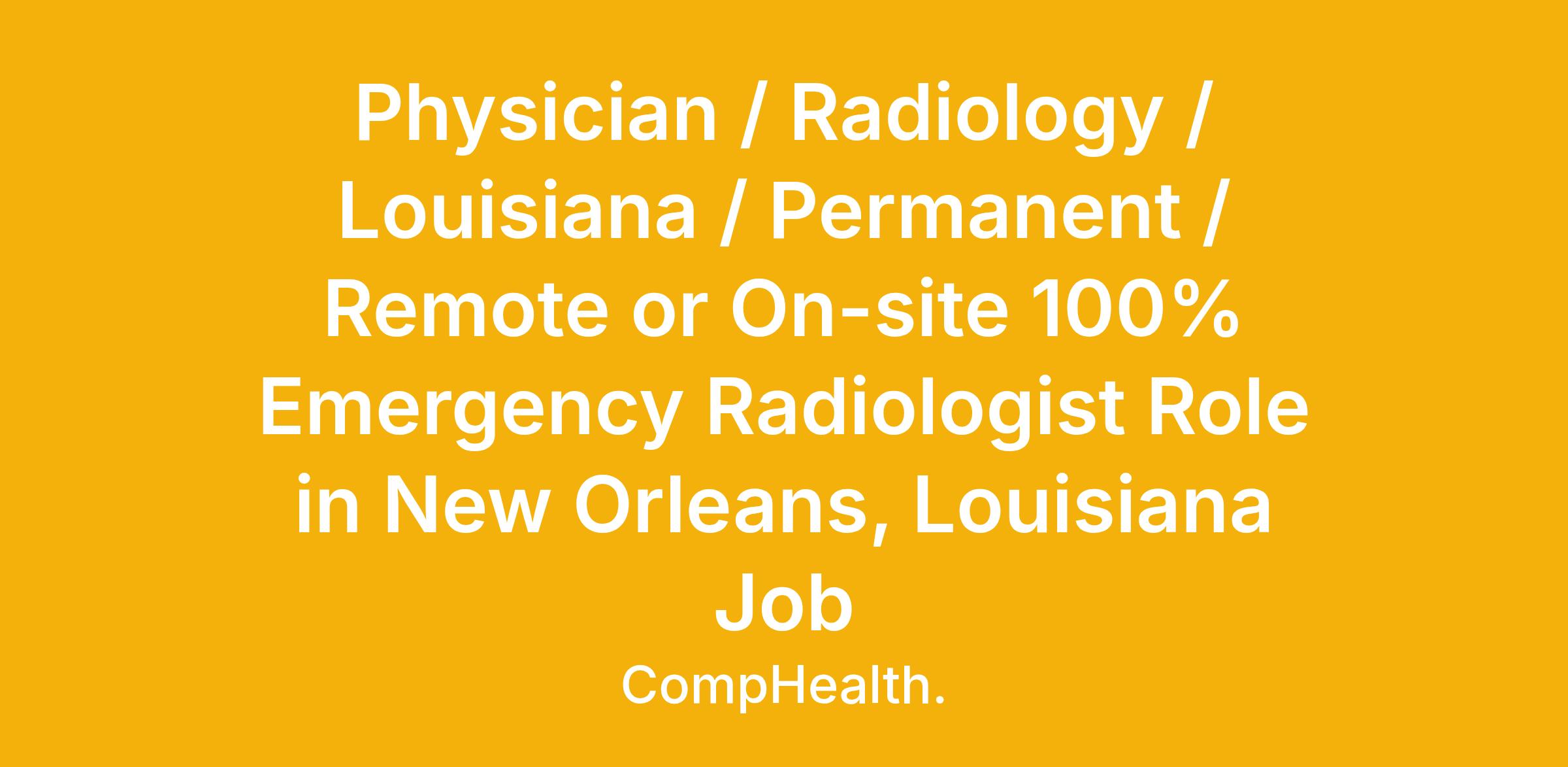 Physician / Radiology / Louisiana / Permanent / Remote or On-site 100% Emergency Radiologist Role in New Orleans, Louisiana Job