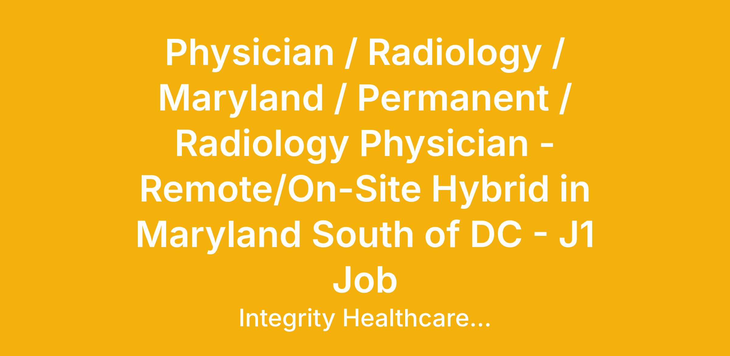 Physician / Radiology / Maryland / Permanent / Radiology Physician - Remote/On-Site Hybrid in Maryland South of DC - J1 Job