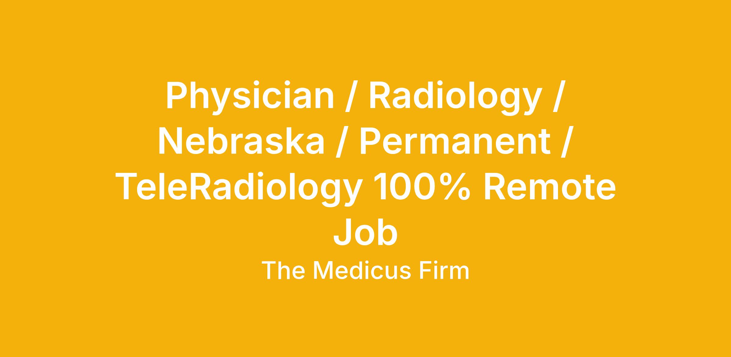 Physician / Radiology / Nebraska / Permanent / TeleRadiology 100% Remote Job
