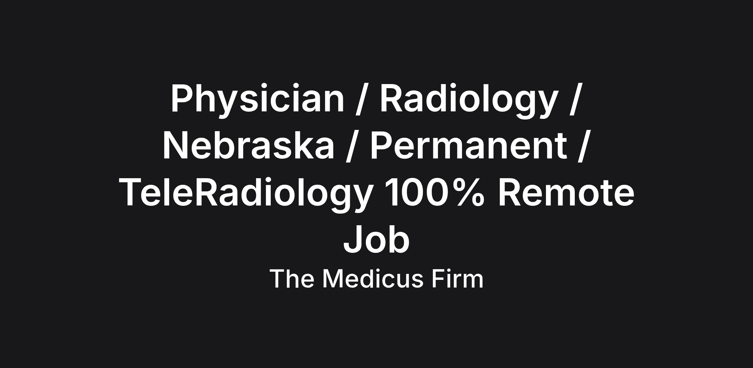 Physician / Radiology / Nebraska / Permanent / TeleRadiology 100% Remote Job