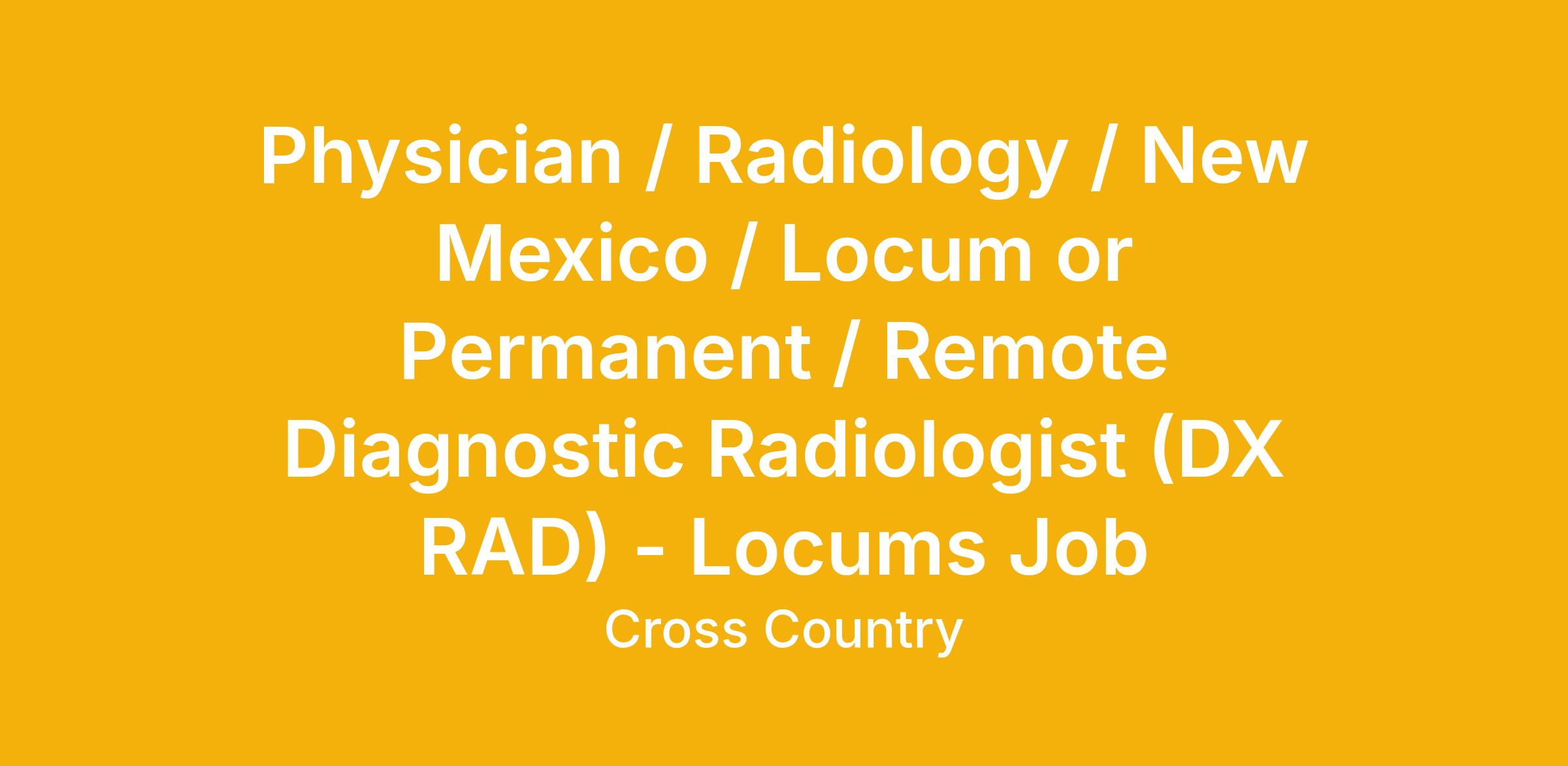 Physician / Radiology / New Mexico / Locum or Permanent / Remote Diagnostic Radiologist (DX RAD) - Locums Job