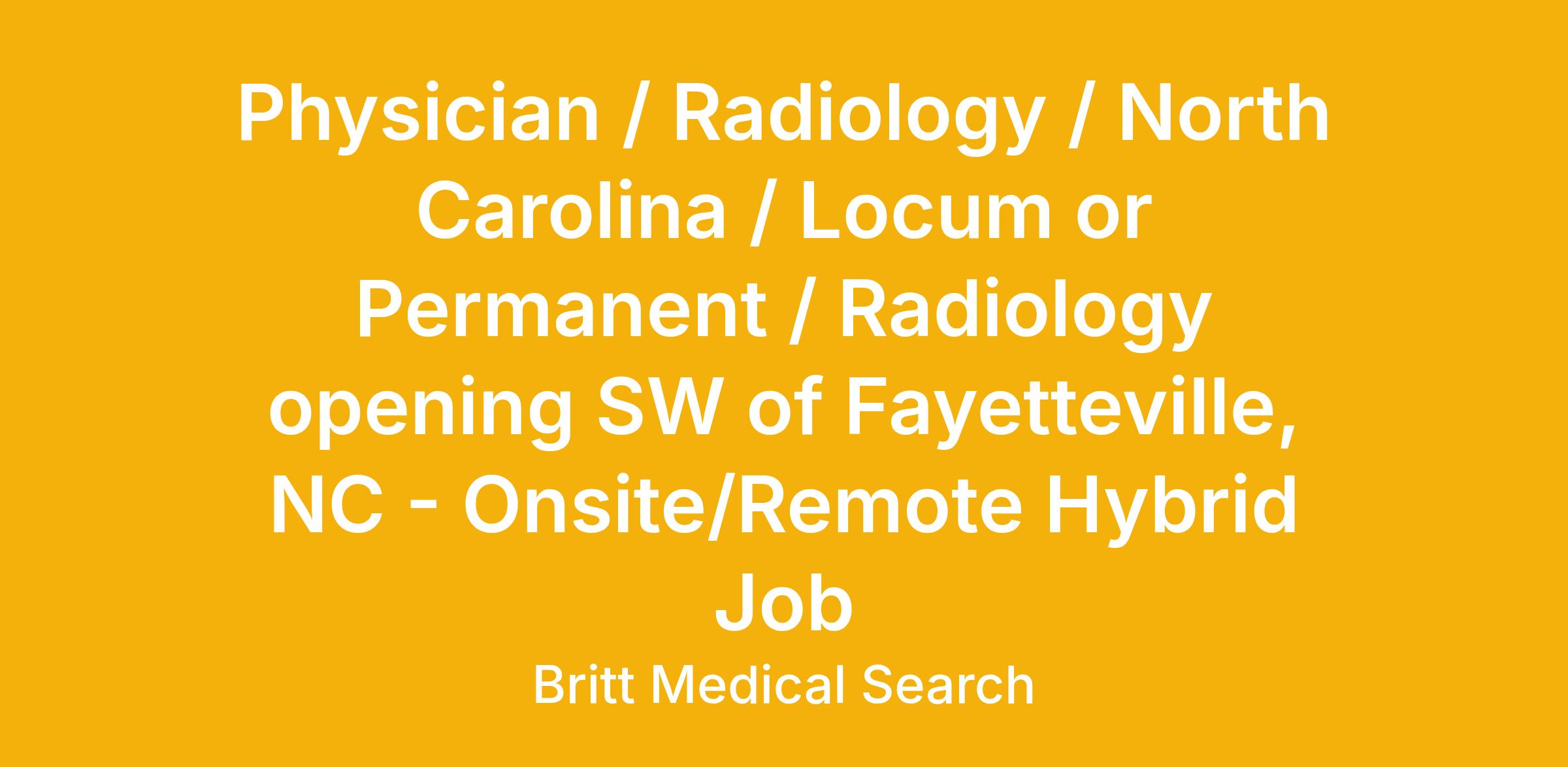 Physician / Radiology / North Carolina / Locum or Permanent / Radiology opening SW of Fayetteville, NC - Onsite/Remote Hybrid Job