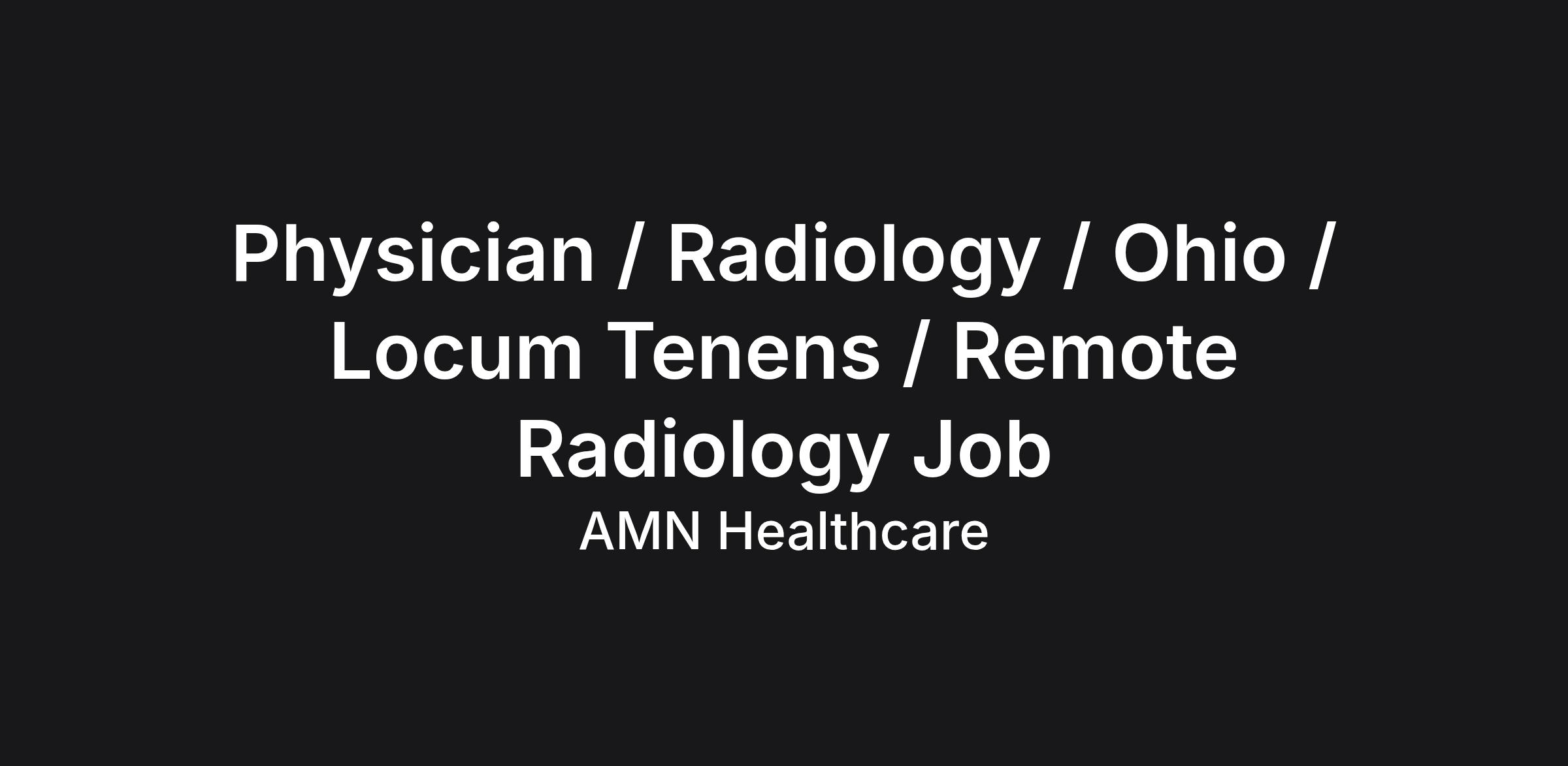 Job Description & Requirements Remote Radiology