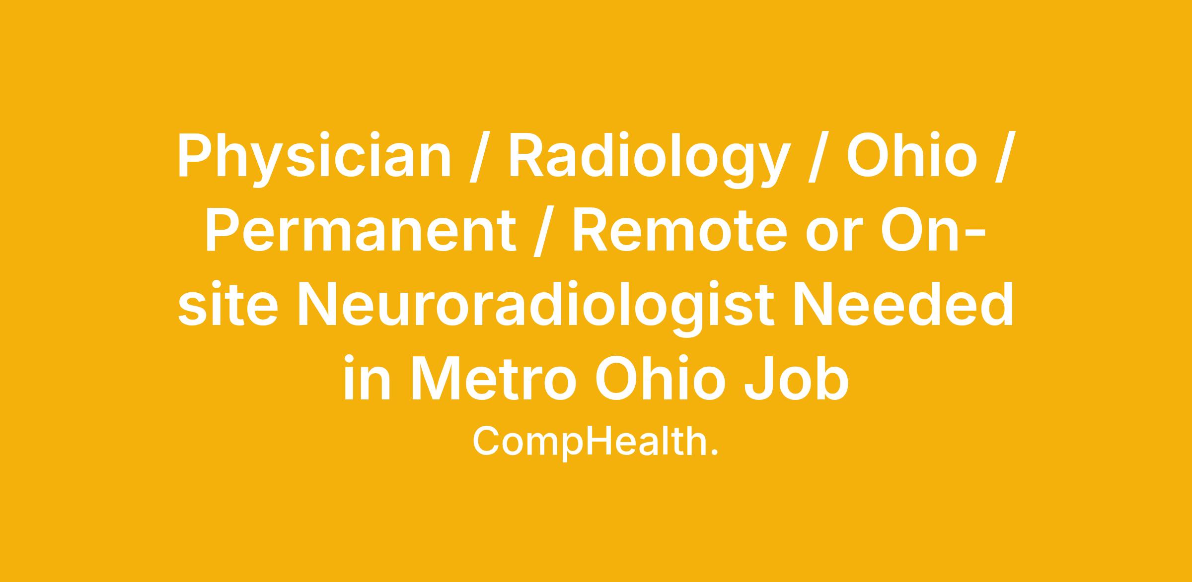Physician / Radiology / Ohio / Permanent / Remote or On-site Neuroradiologist Needed in Metro Ohio Job