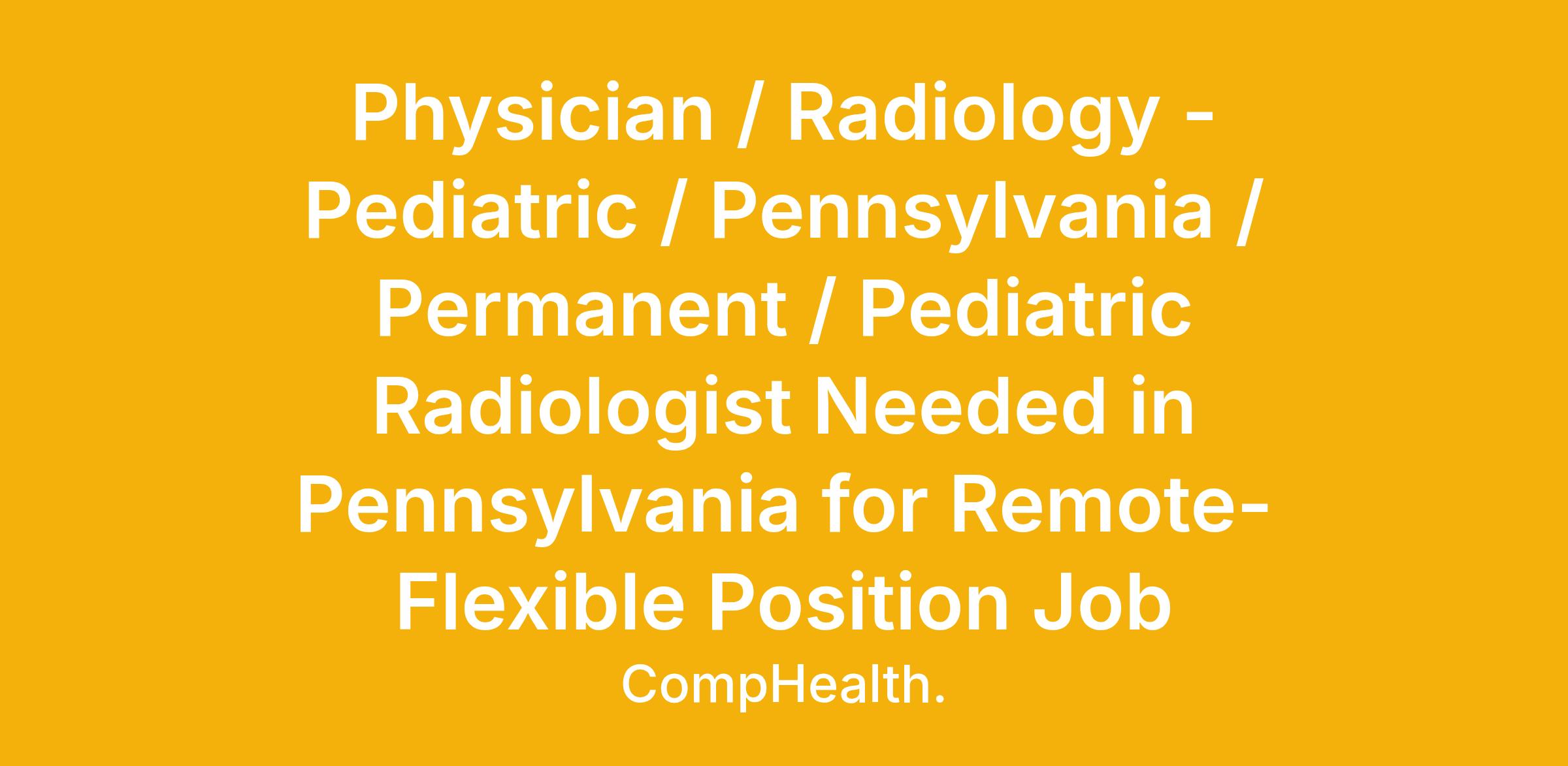 Physician / Radiology - Pediatric / Pennsylvania / Permanent / Pediatric Radiologist Needed in Pennsylvania for Remote-Flexible Position Job