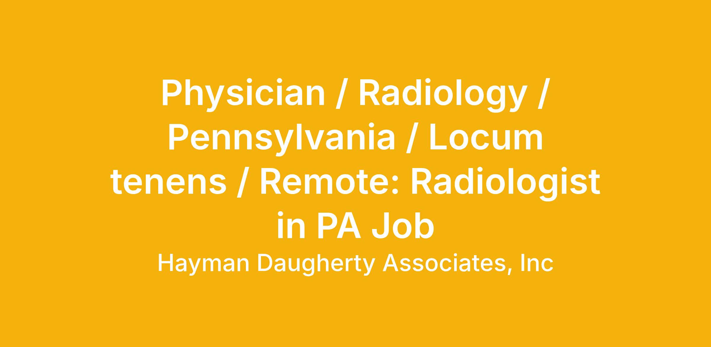 Physician / Radiology / Pennsylvania / Locum tenens / Remote: Radiologist in PA Job
