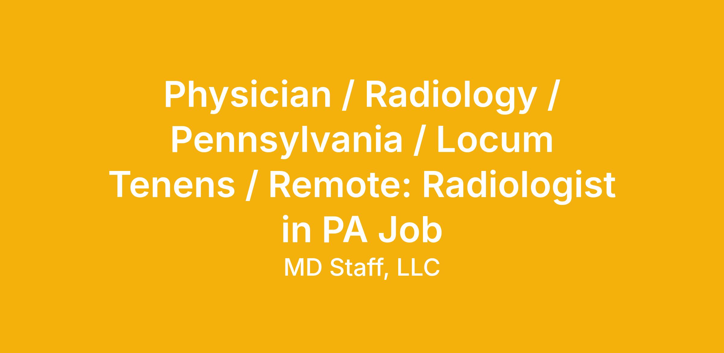 If you are a licensed, board-certified radiologist interested in this flexible and rewarding locum tenens opportunity, apply now using Job ID . This is an excellent chance to join a reputable healthcare system in northern Pennsylvania, where you can make a significant impact while enjoying a flexible schedule and a supportive team environment.