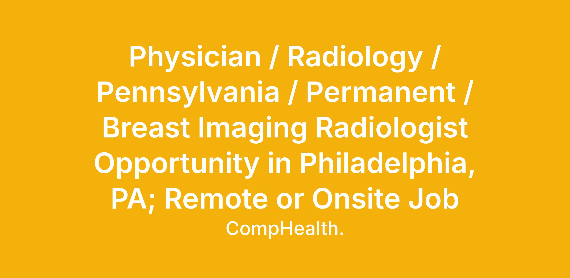 Physician / Radiology / Pennsylvania / Permanent / Breast Imaging Radiologist Opportunity in Philadelphia, PA; Remote or Onsite Job