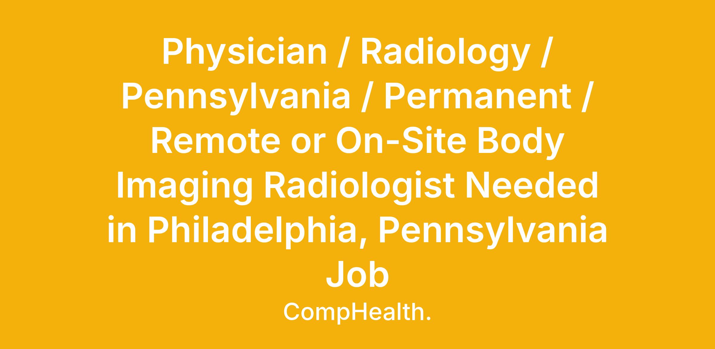 Physician / Radiology / Pennsylvania / Permanent / Remote or On-Site Body Imaging Radiologist Needed in Philadelphia, Pennsylvania Job