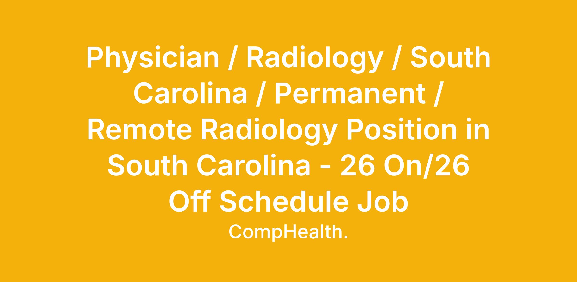 Physician / Radiology / South Carolina / Permanent / Remote Radiology Position in South Carolina - 26 On/26 Off Schedule Job