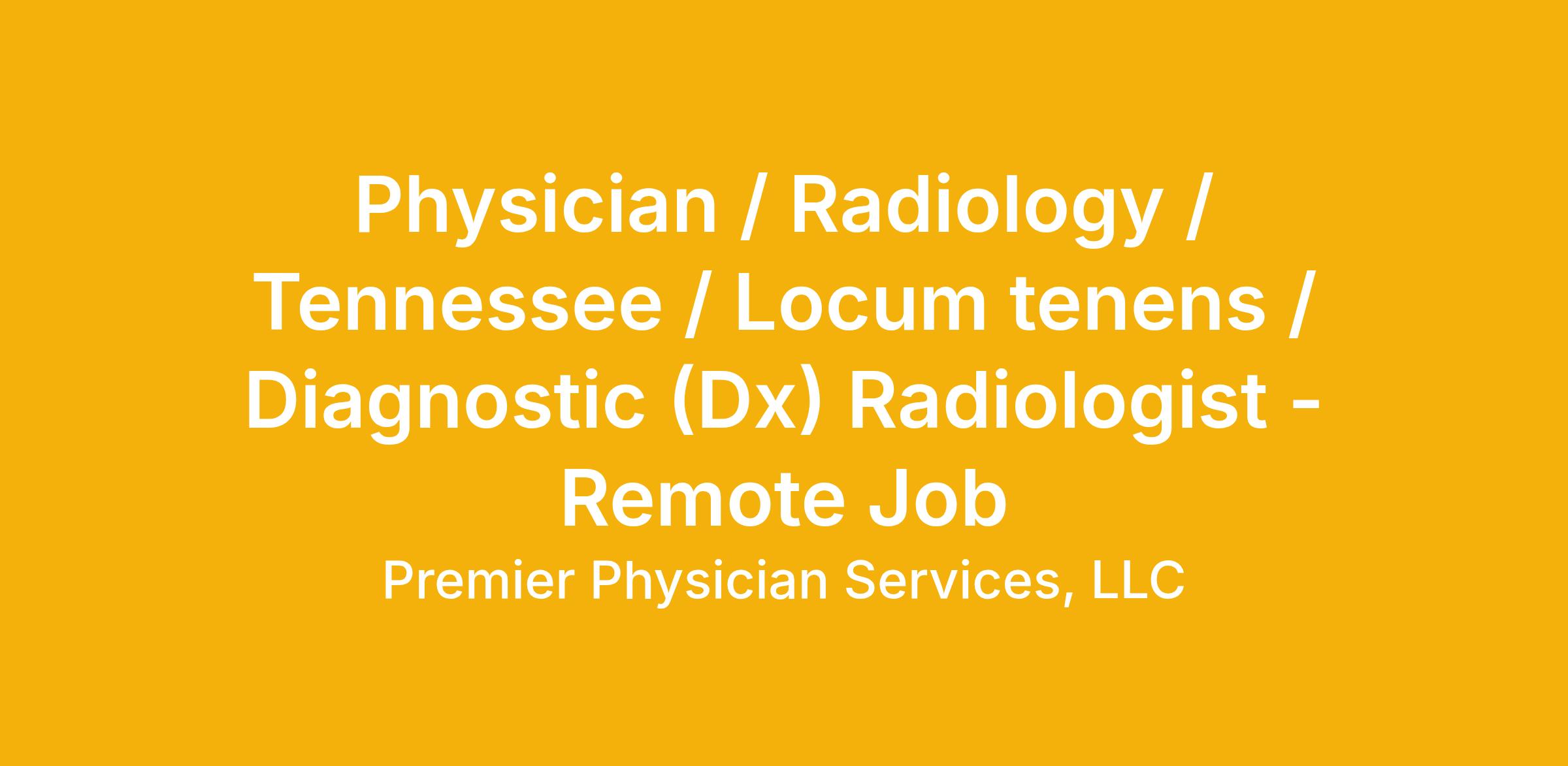 Remote Diagnostic Radiologist NeedRemote diagnostic rad needed for evening (5 pm to 11 pm CST) & overnight (11 pm to 7 am CST)Holiday coverage: Thanksgiving and ChristmasGeneral and MSK-No fellowship requiredVolume productivity expectation: 55 RVU's per shiftRPCE Tech Stack, Powerscribe 4.0For additional details on this opportunity or others, please contact Cheryl at Apply Here or Click to See Phone . If this position isnt the right fit, we have a variety of other opportunities available and would love to help you find the right match.Join us in providing outstanding care while enjoying the flexibility and rewards of a locum tenens role!