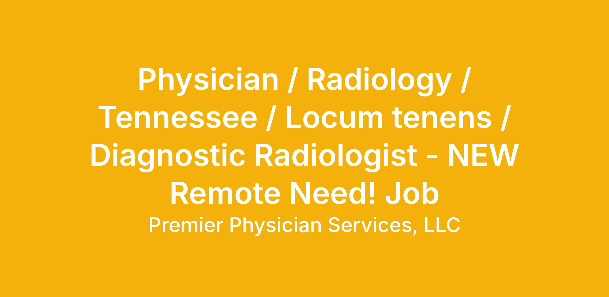 Physician / Radiology / Tennessee / Locum tenens / Diagnostic Radiologist - NEW Remote Need! Job