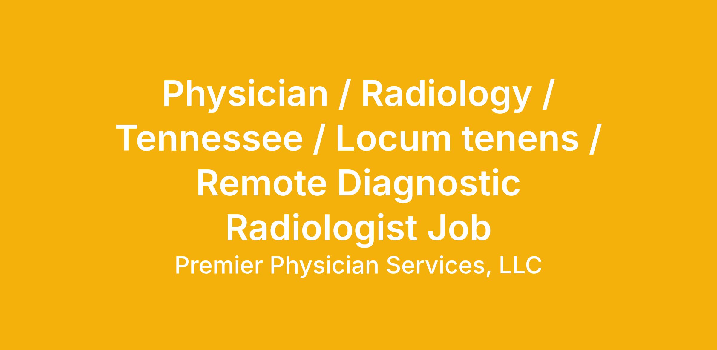 Physician / Radiology / Tennessee / Locum tenens / Remote Diagnostic Radiologist Job