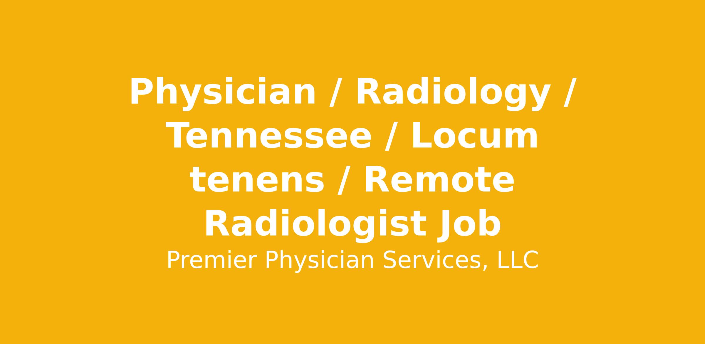 Physician / Radiology / Tennessee / Locum tenens / Remote Radiologist Job