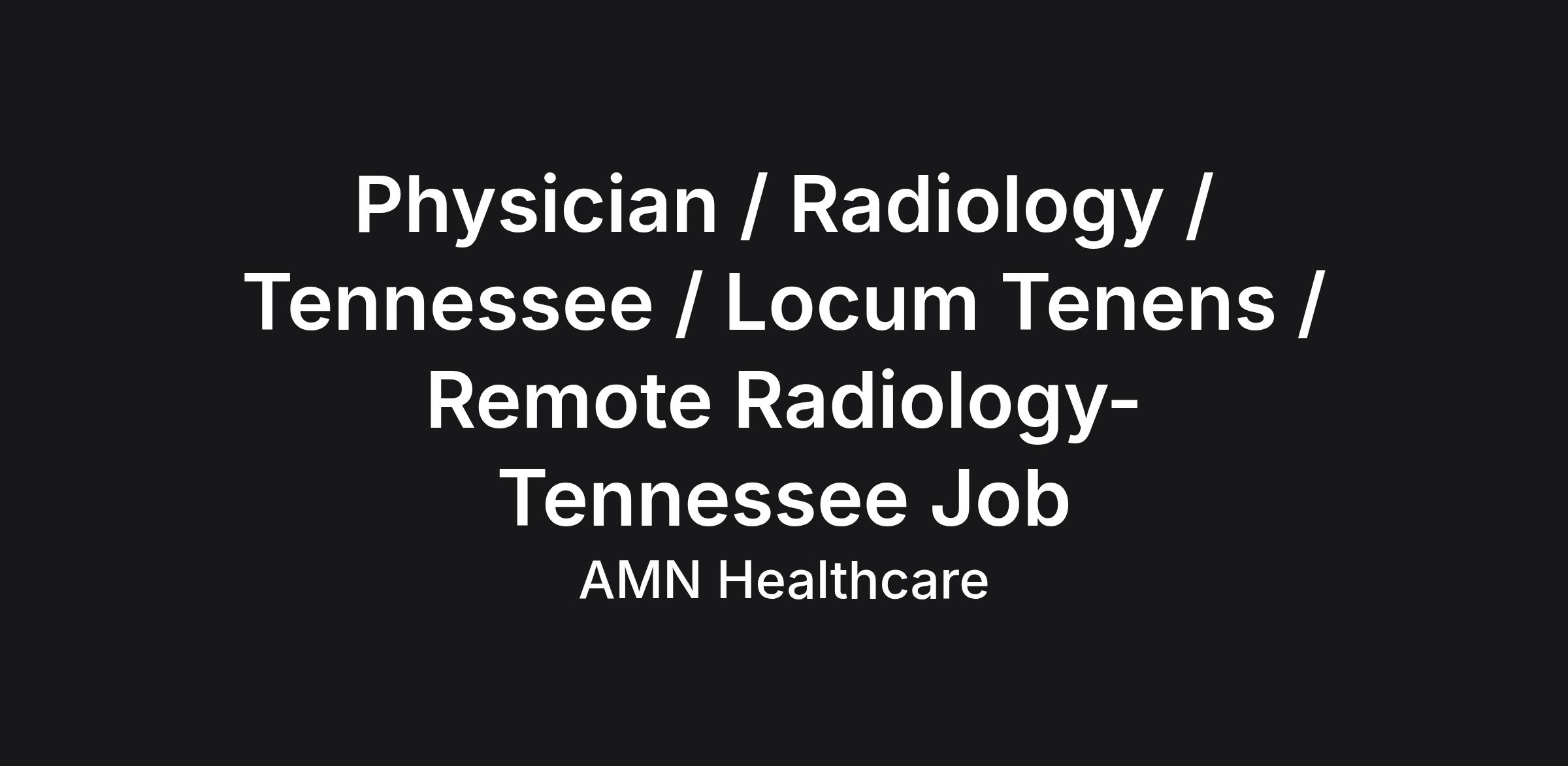 Physician / Radiology / Tennessee / Locum Tenens / Remote Radiology-Tennessee Job