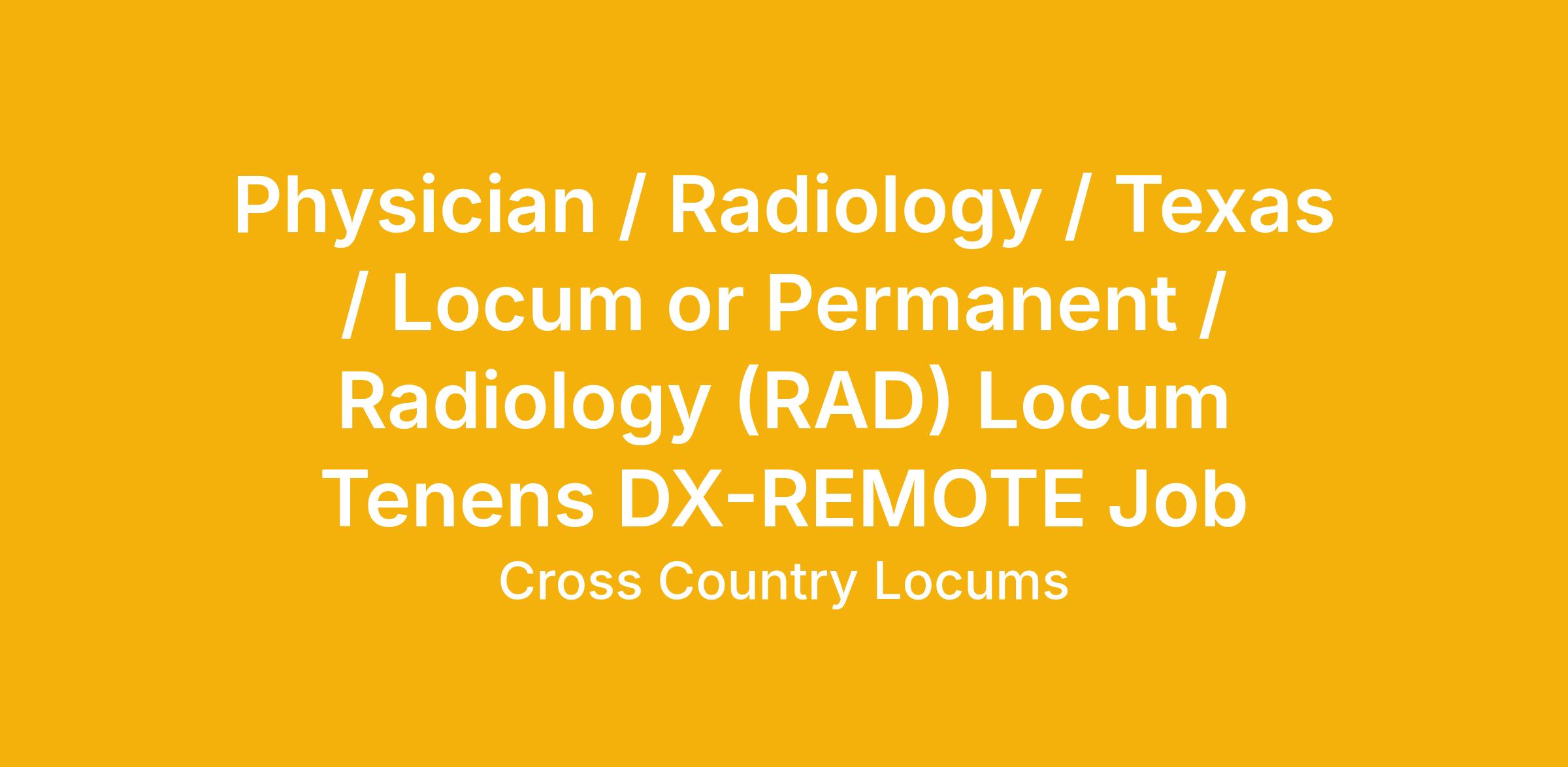Physician / Radiology / Texas / Locum or Permanent / Radiology (RAD) Locum Tenens DX-REMOTE Job