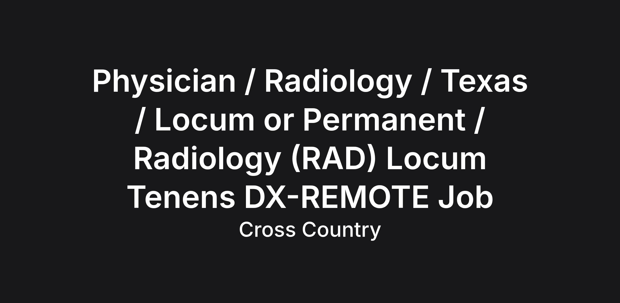 Physician / Radiology / Texas / Locum or Permanent / Radiology (RAD) Locum Tenens DX-REMOTE Job