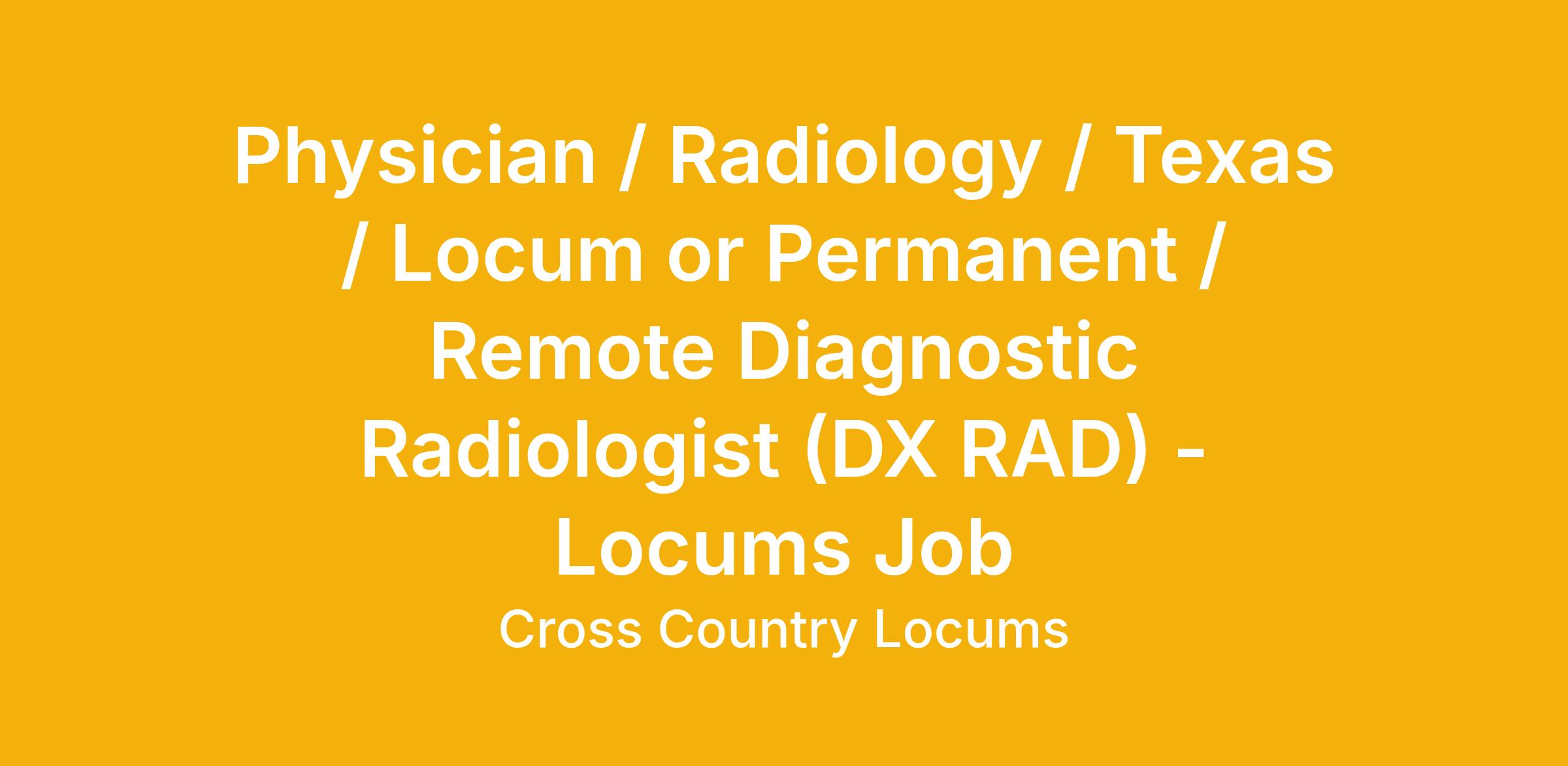Physician / Radiology / Texas / Locum or Permanent / Remote Diagnostic Radiologist (DX RAD) - Locums Job