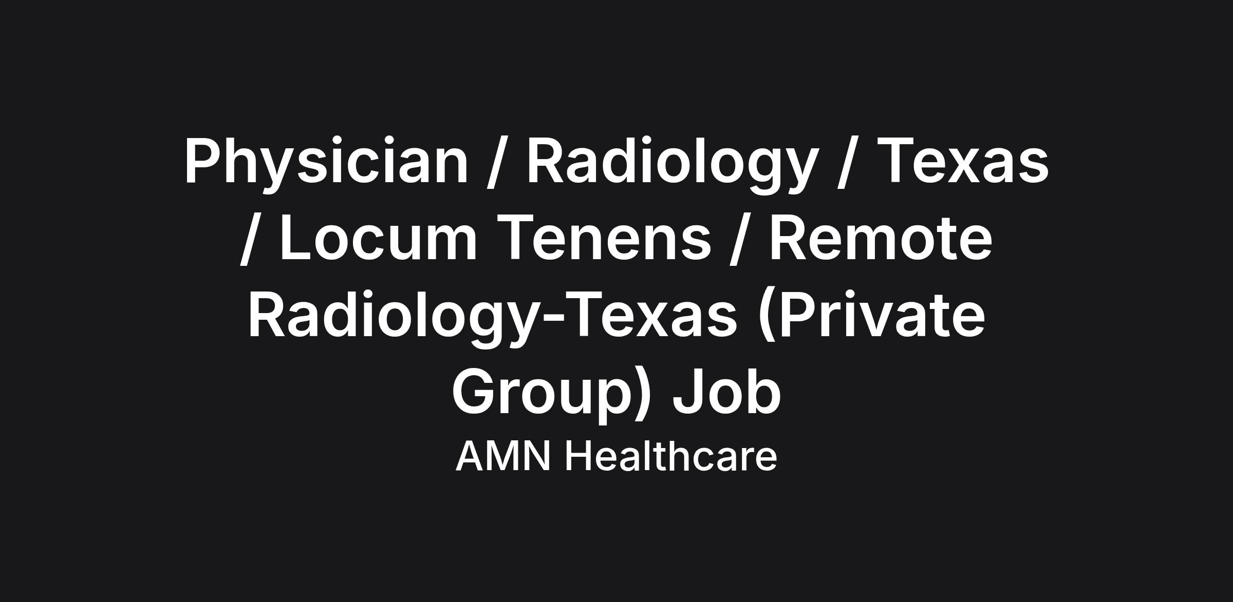 Job Description & Requirements Remote Radiology-Texas (Private Group)