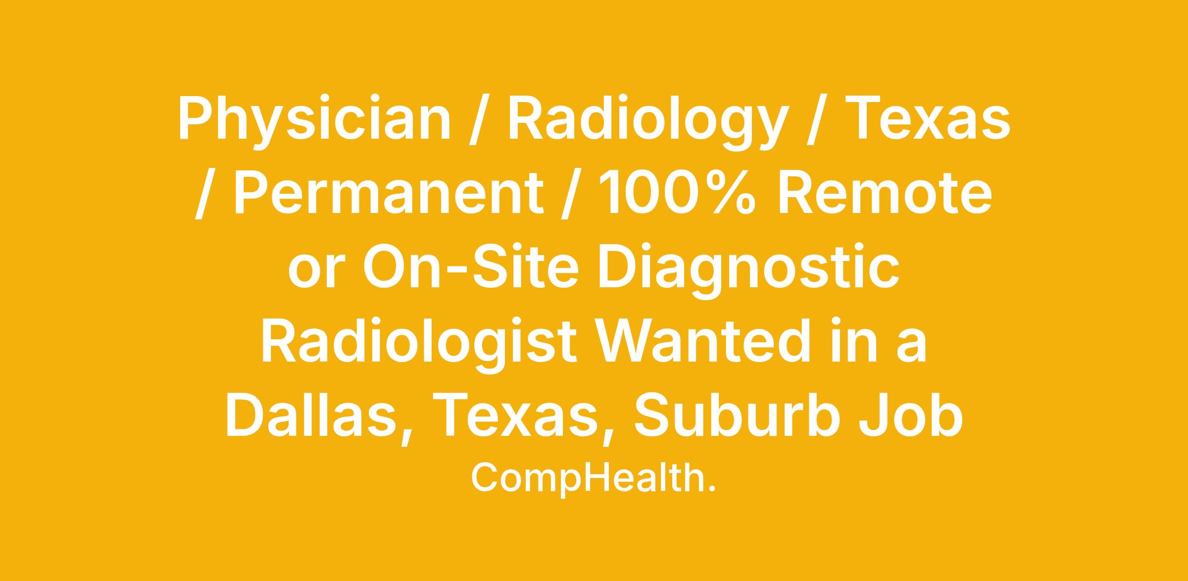 Physician / Radiology / Texas / Permanent / 100% Remote or On-Site Diagnostic Radiologist Wanted in a Dallas, Texas, Suburb Job