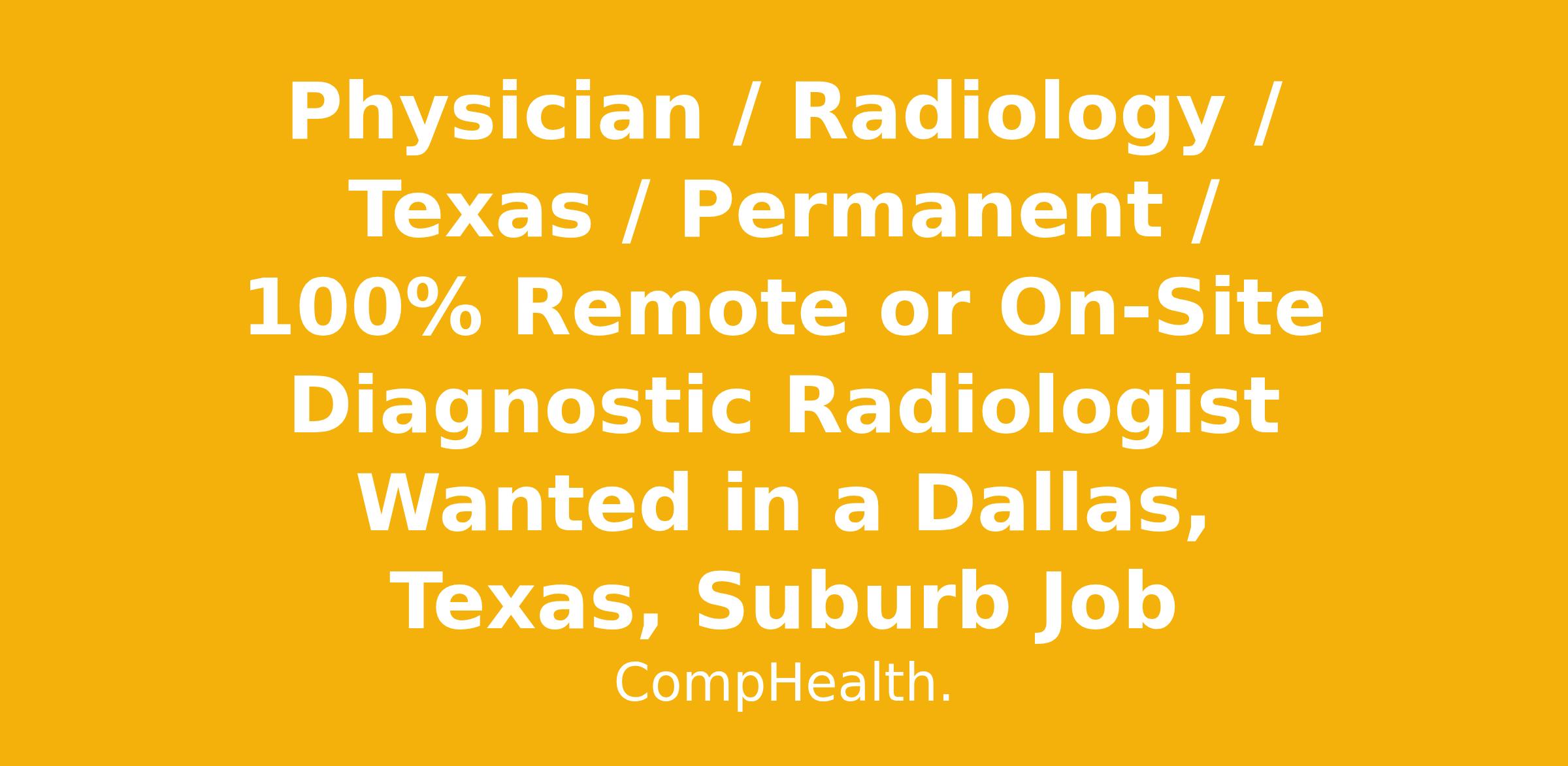 Physician / Radiology / Texas / Permanent / 100% Remote or On-Site Diagnostic Radiologist Wanted in a Dallas, Texas, Suburb Job