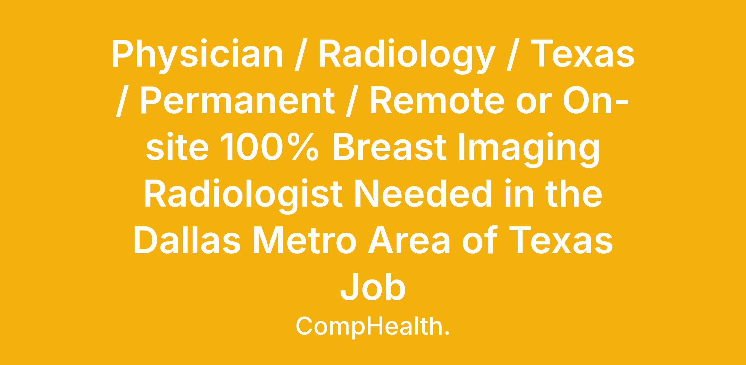 Physician / Radiology / Texas / Permanent / Remote or On-site 100% Breast Imaging Radiologist Needed in the Dallas Metro Area of Texas Job