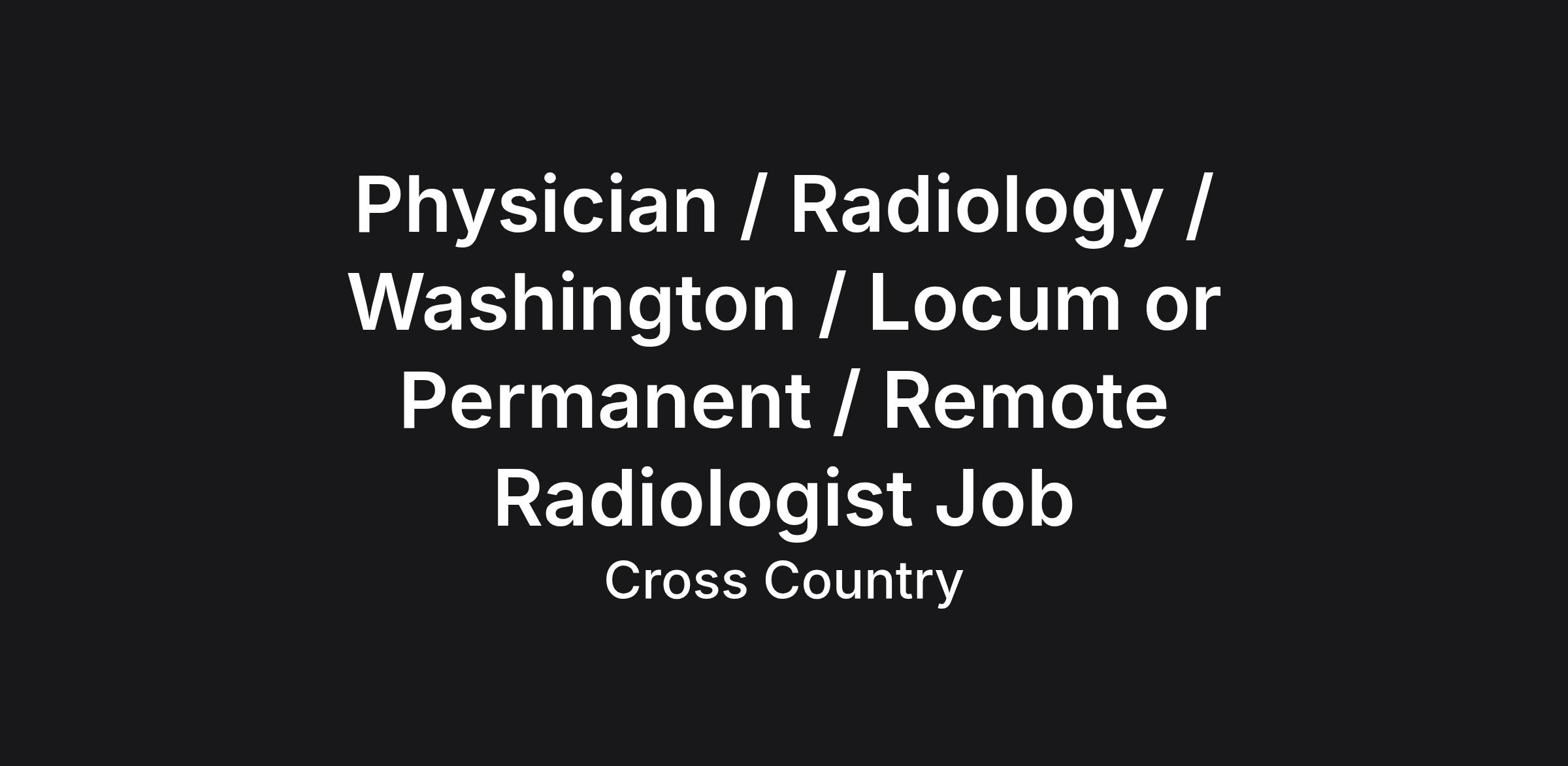 Physician / Radiology / Washington / Locum or Permanent / Remote Radiologist Job