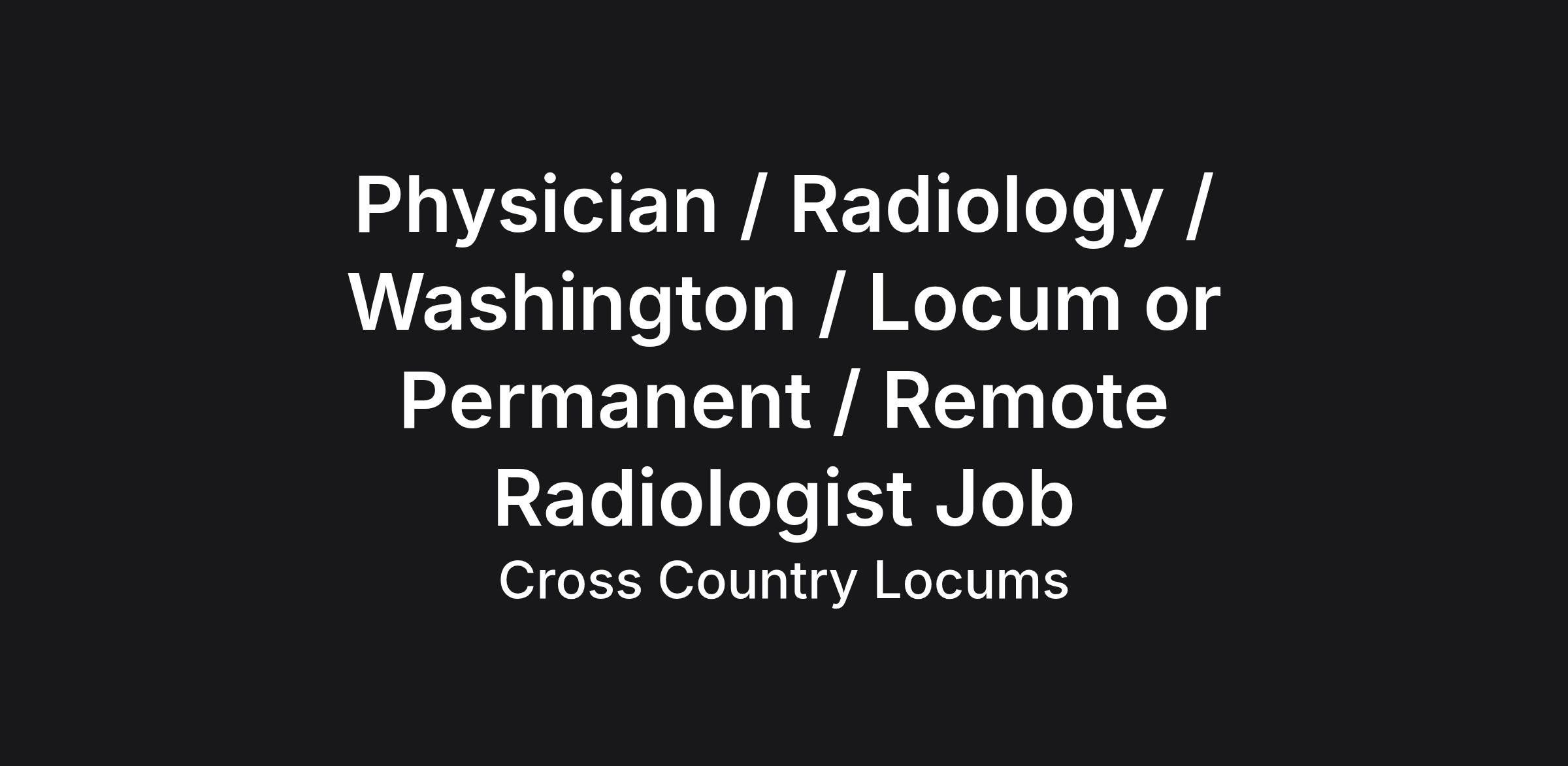 Physician / Radiology / Washington / Locum or Permanent / Remote Radiologist Job