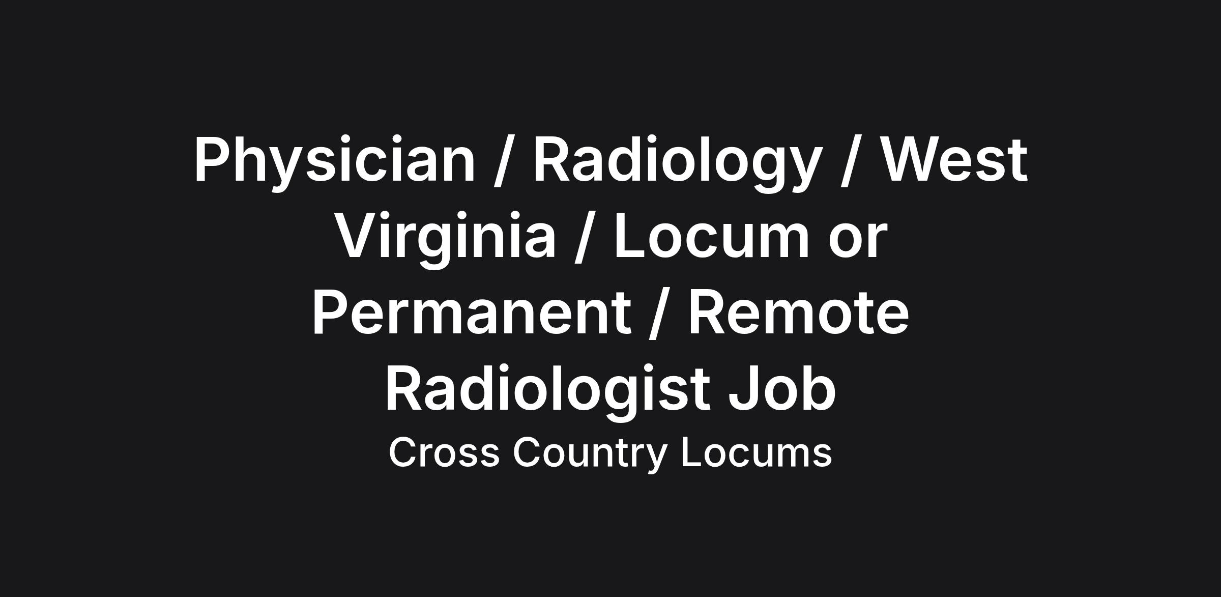 Physician / Radiology / West Virginia / Locum or Permanent / Remote Radiologist Job