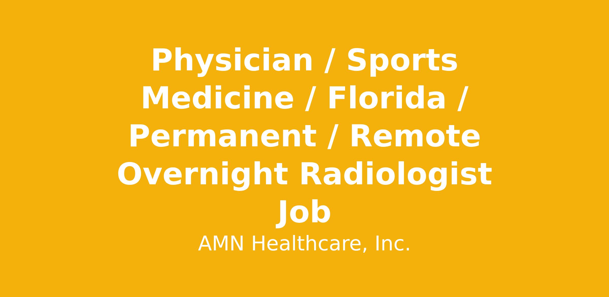 Physician / Sports Medicine / Florida / Permanent / Remote Overnight Radiologist Job