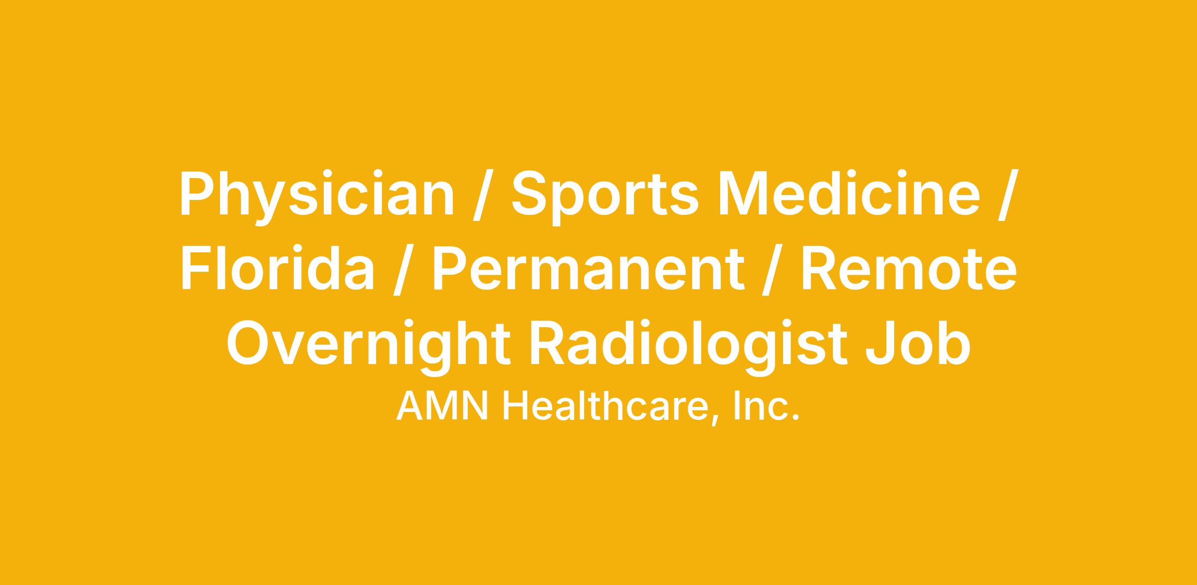 Physician / Sports Medicine / Florida / Permanent / Remote Overnight Radiologist Job
