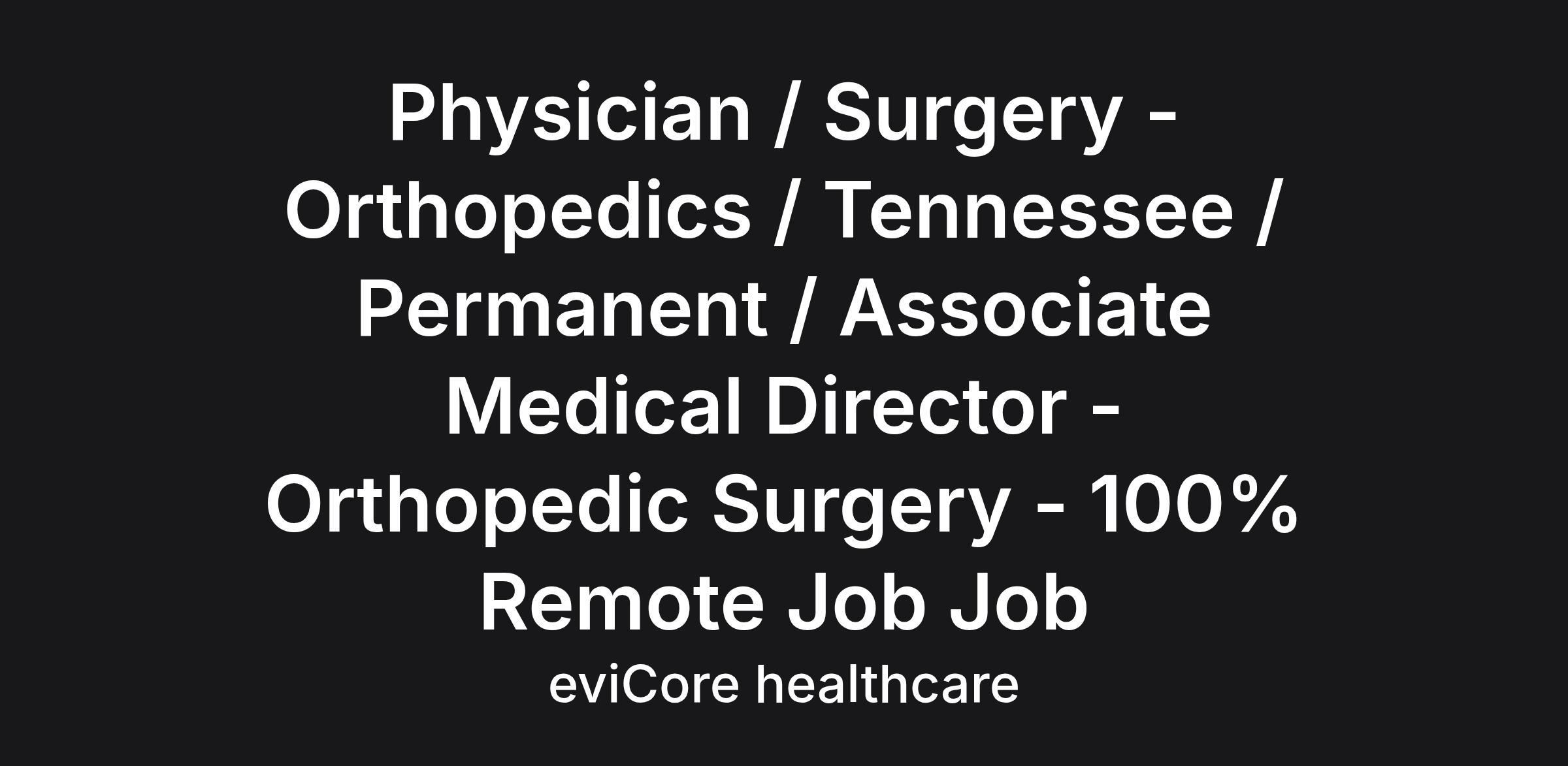 Physician / Surgery - Orthopedics / Tennessee / Permanent / Associate Medical Director - Orthopedic Surgery - 100% Remote Job Job