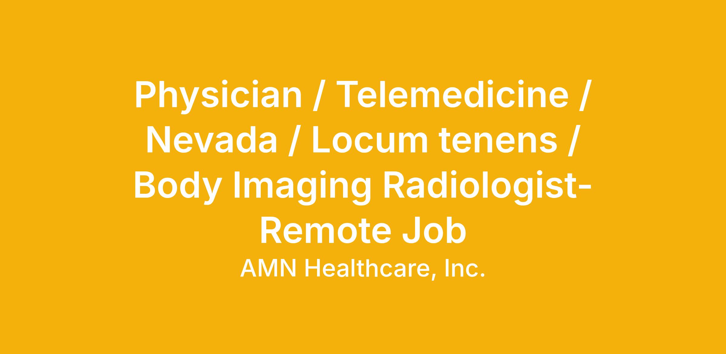 Physician / Telemedicine / Nevada / Locum tenens / Body Imaging Radiologist-Remote Job