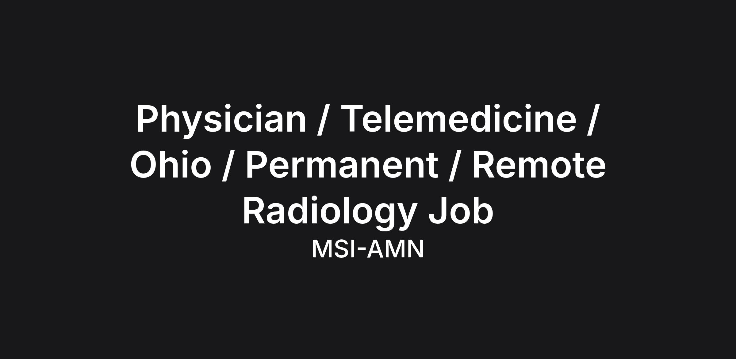 Physician / Telemedicine / Ohio / Permanent / Remote Radiology Job
