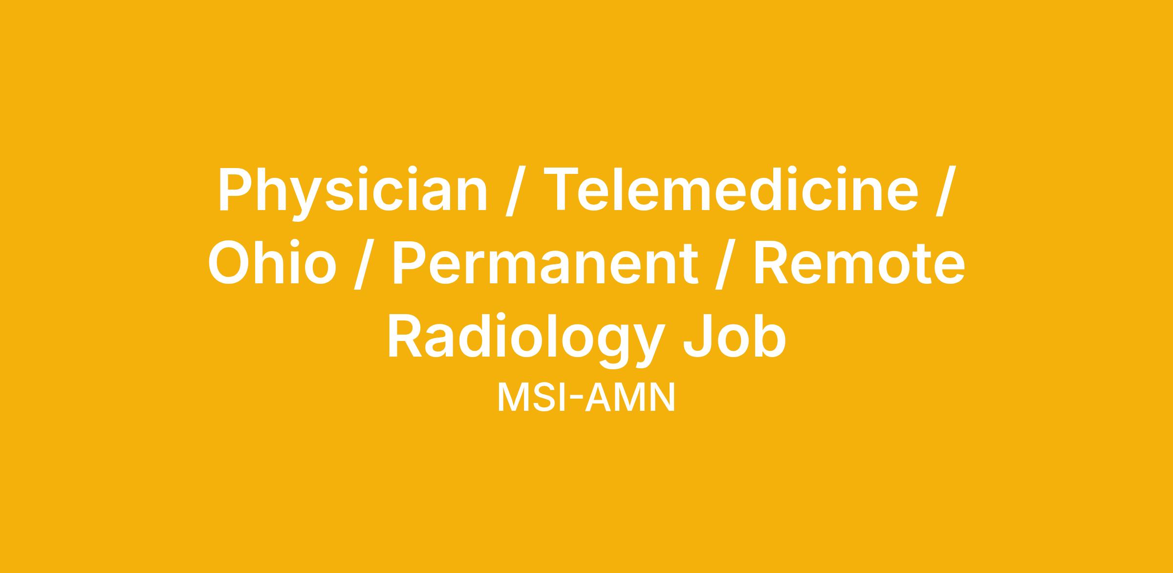 Physician / Telemedicine / Ohio / Permanent / Remote Radiology Job