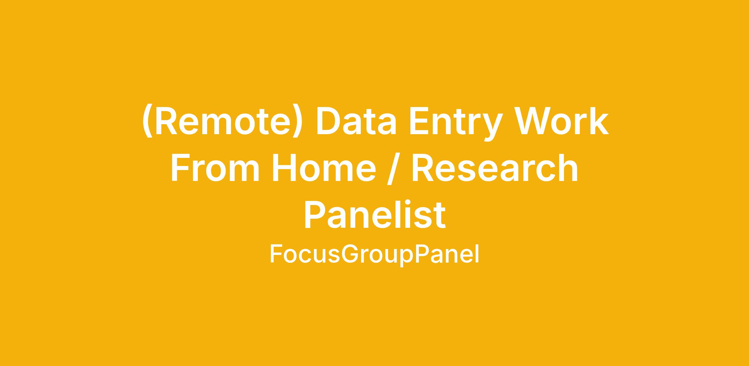 (Remote) Data Entry Work From Home / Research Panelist
