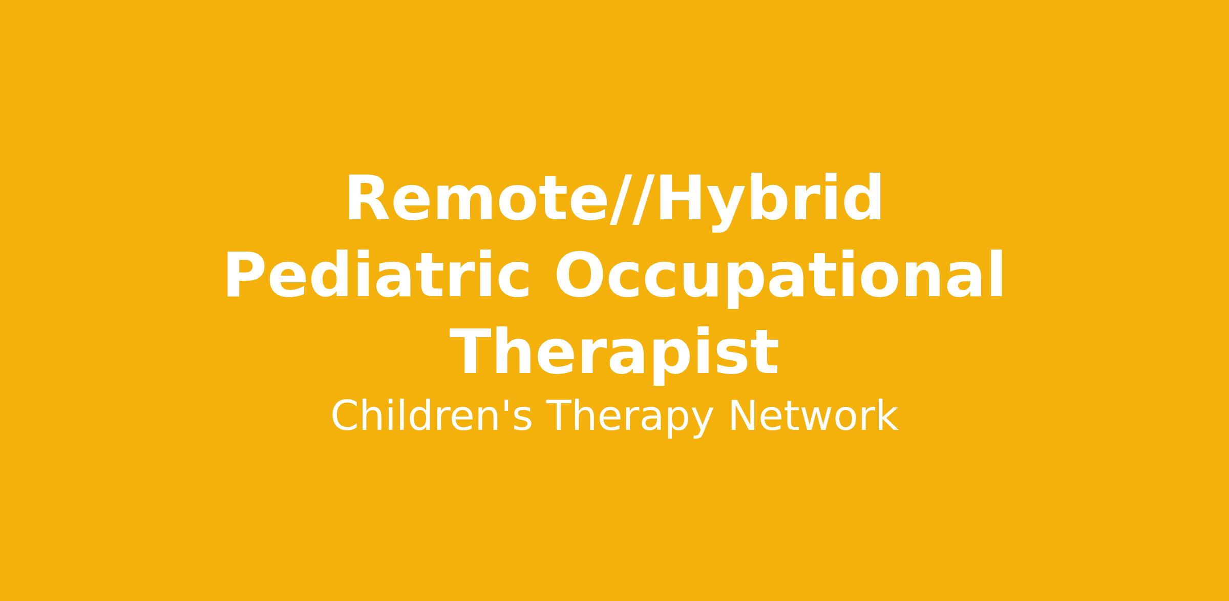 Children's Therapy Network is seeking a Pediatric Occupational Therapist interested in a remote or hybrid role supporting families and supervising an Occupational Therapy Assistant (OTA) .