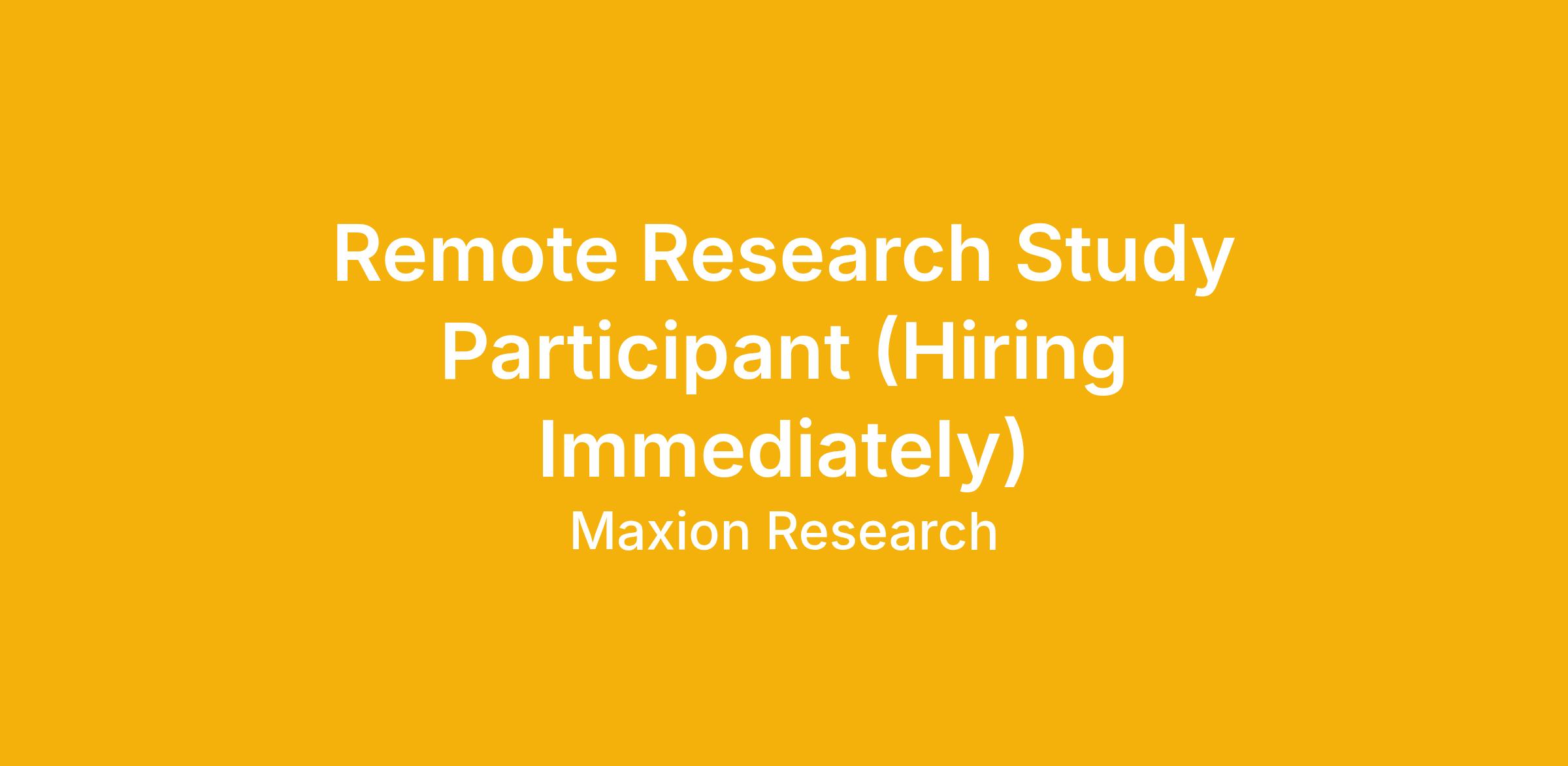 Remote Research Study Participant (Hiring Immediately)