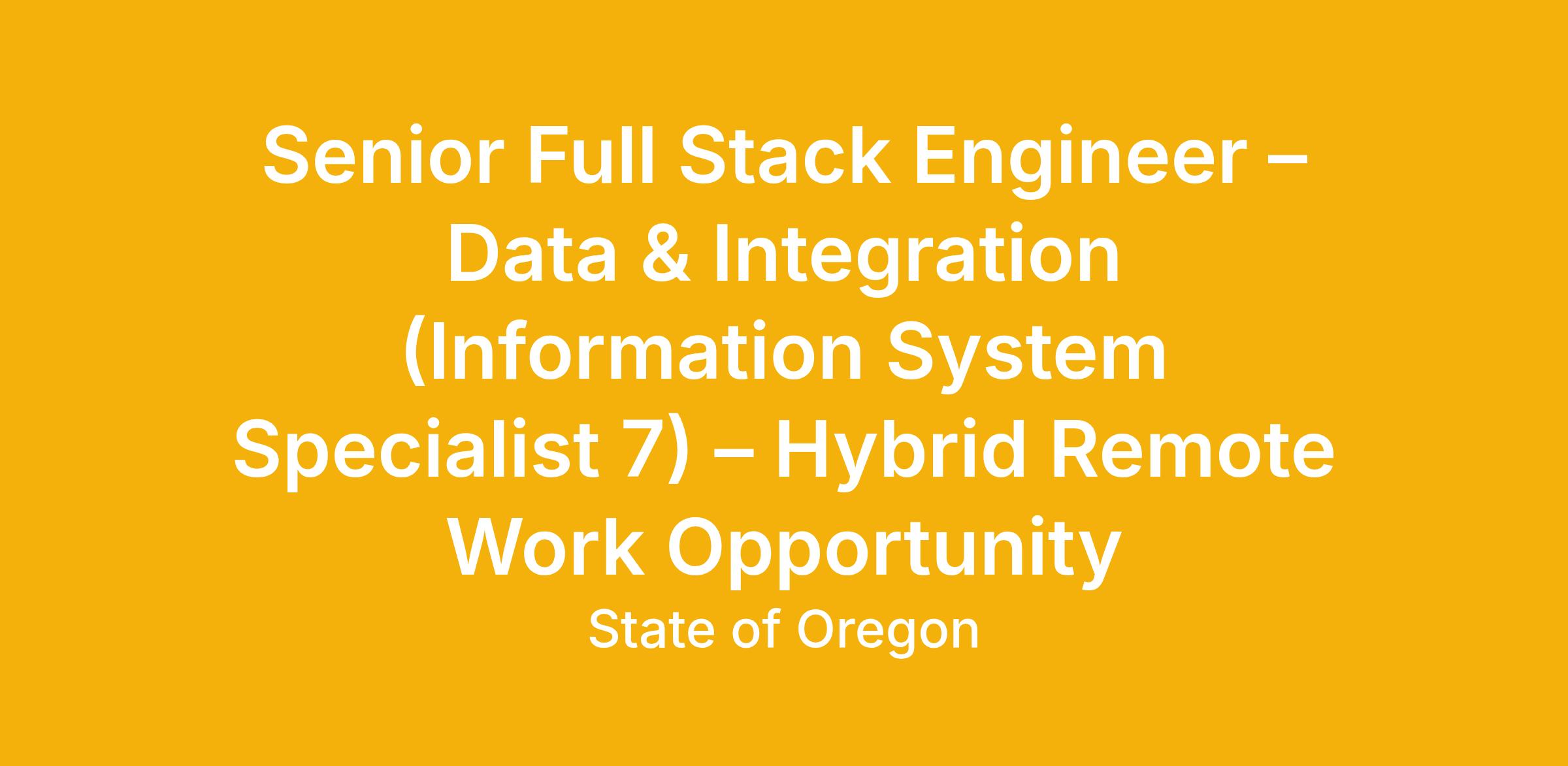 Senior Full Stack Engineer – Data & Integration (Information System Specialist 7) – Hybrid Remote Work OpportunityJob Description: