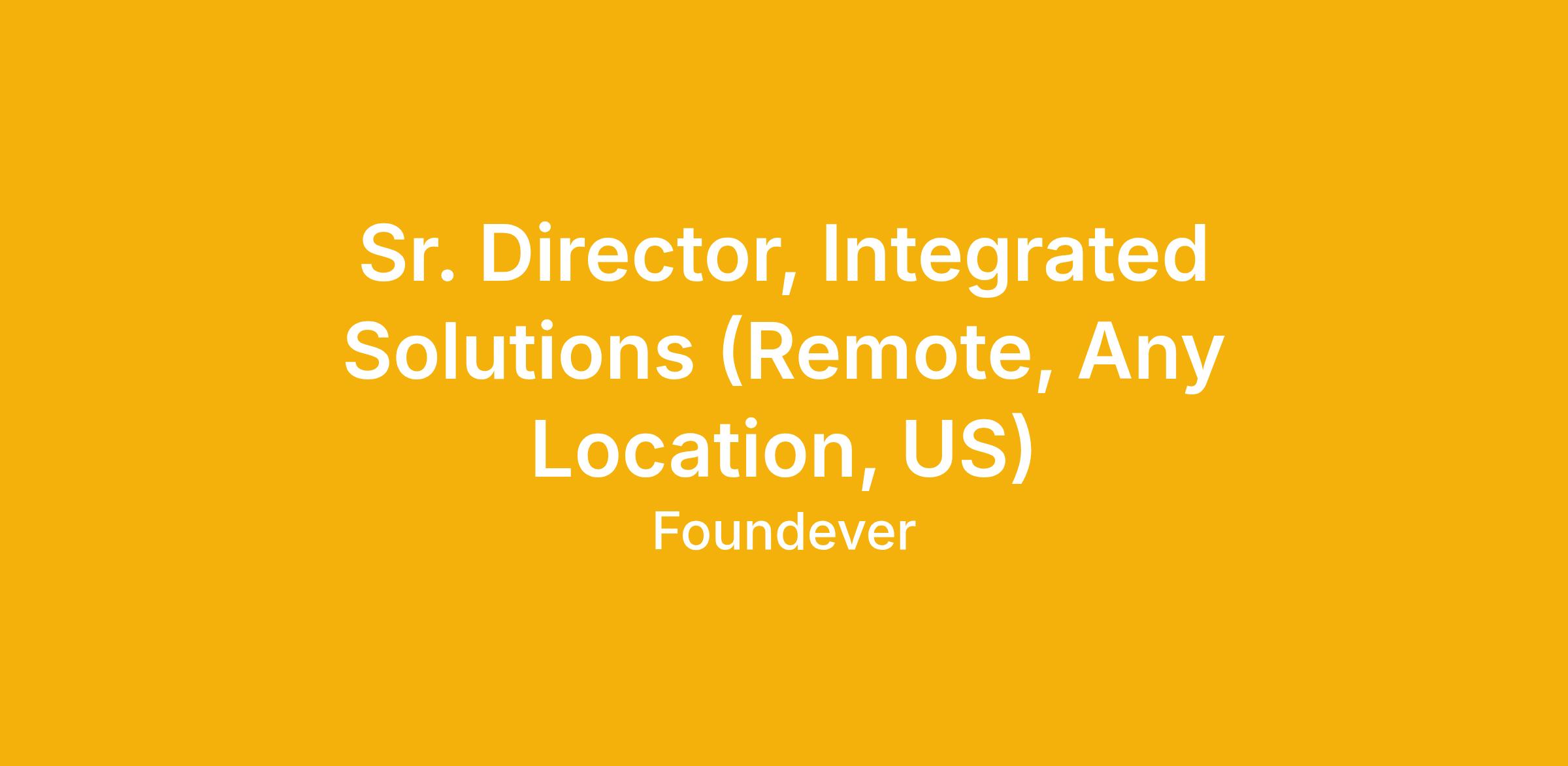 Sr. Director, Integrated Solutions (Remote, Any Location, US)