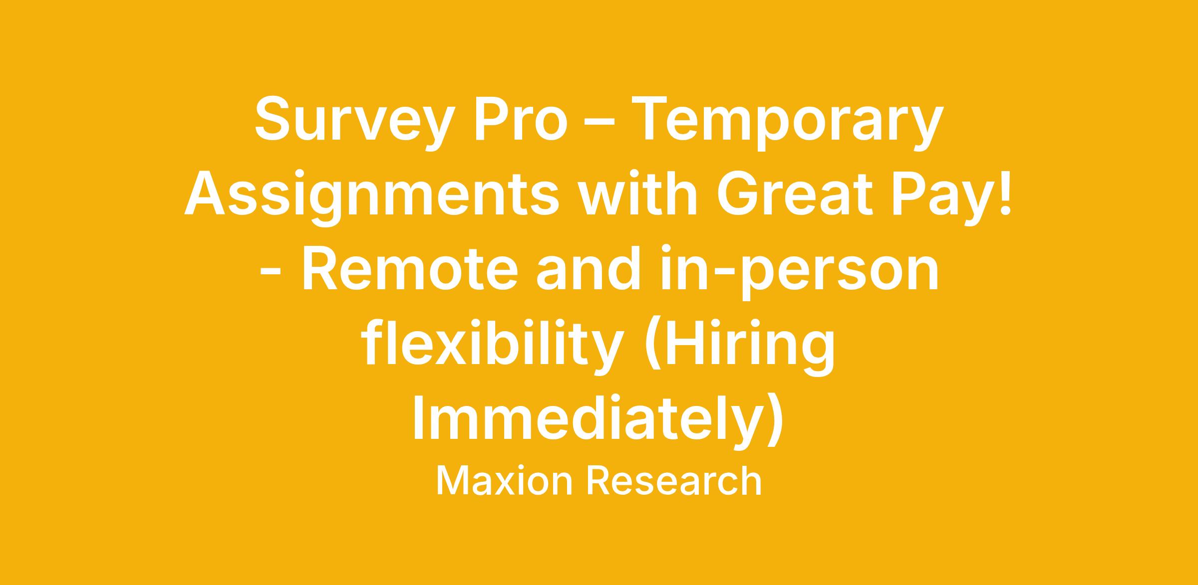 Survey Pro – Temporary Assignments with Great Pay! - Remote and in-person flexibility (Hiring Immediately)